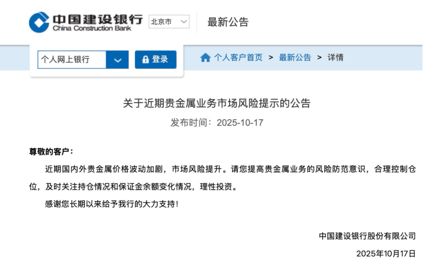 多家银行齐发公告:理性投资! 专业金融数据,下一代智能终端 黄金,成为年度最大的投资热点之一。 国际金价连日上涨,10月17日,国际现货黄金历史上首次冲破4300美元/盎司,年内至今已涨超60%。然而,当日晚间,全球贵金属价格显著回落,金价跌幅超过1.5%,银价更是大幅跳水,跌幅达到4.21%。 随着国际金价上涨以及波动加大,各家银行纷纷出手。10月17日,建设银行、中信银行、民生银行同日发布公告,纷纷提示投资者黄金价格波动风险,需理性买入积存金等产品。 三家银行同日发声 10月17日,建设银行公告称,近期国内外贵金属价格波动加剧,市场风险提升。请您提高贵金属业务的风险防范意识,合理控制仓位,及时关注持仓情况和保证金余额变化情况,理性投资。 ![]() 同日,民生银行、中信银行等两家股份行也发布近期贵金属业务市场风险提示的公告。其中,中信银行强调,建议客户根据自身的风险承受能力和资金使用需求,做好风险预防,以资产配置角度合理配置黄金资产,理性购买积存金和实物金产品。 金价上涨后,积存金成为银行最炙手可热的贵金属产品。 一般来说,积存金业务是投资者在银行开立积存金账户,采取定期积存或主动积存的方式,购入以黄金资产为依托的积存金份额,即兑换各类实物贵金属产品的权利。投资者对持有的积存金,可以选择线上赎回获取现金,也有银行提供实物贵金属产品兑换服务。 随着金价攀升,积存金的投资门槛水涨船高。近日,中国银行上调行内积存金产品的认购起点。 具体来看,10月15日起,中国银行按金额购买积存金产品或创建积存定投计划时,最小购买金额由850元上调为950元,追加购买金额维持200元整数倍不变。同时,已在执行中的定投计划不受影响。 国际黄金持仓量未触高位 金价走上高位后,有不少投资者产生“恐高情绪”,选择落袋为安。有机构指出,短期内,黄金价格可能因避险情绪性因素消退等产生震荡。 信达期货10月15日发表观点称,短期来看,近期多重利多集中释放,使金价在预期交易推动下大幅上涨,涨幅远超市场预期,技术面亦出现明显超买迹象。随着金价不断快速上攻至历史新高位,短期上冲惯性或将延续,但需警惕高位回调压力。 信达期货指出,中期而言,美联储降息周期带来的流动性宽松仍是金价的核心支撑,金融属性的利多效应料将持续发酵,多头趋势难以逆转。展望未来几日,金价或面临部分获利回吐压力,叠加中美关税局势和中东和平协议进展等潜在利空,短期波动可能加大。 中信证券研报也提到,短期内黄金价格的快速上行可能是由各类避险情绪驱动,体现在市场行为上是8月底以来北美、欧洲的黄金ETF资金流入量迅速增长,COMEX市场管理基金和报告头寸的多头持仓迅速增长。在这些情绪性因素消退后,黄金的快速上行行情可能暂告一段落。 不过,长期来看,多家机构对黄金价格走势仍保持乐观。 10月16日,世界黄金协会发布的月度评论称,当前投资者担心黄金处于显著的超买状态,并且低位徘徊已久的利率和美元也有可能出现反弹从而打压金价。但从战略层面看,黄金的总体持仓依然处于低位。 世界黄金协会制作的数据表显示,目前散户黄金投资占全球资产的比重在2%以下,央行黄金占外汇储备总量的比重在30%以下,两者占比均远未触及1980年的历史高位。 前述中信证券研报也表示,去年以来,美国联邦债务问题愈发恶化、美元信用逐步受到质疑、全球央行的放量购金、美元利率逐步走向宽松等这些因素始终构成对黄金市场坚定的支撑。中信证券认为,仍然无需担心黄金价格大幅回撤的风险,反而仍需聚焦把握做多机会。而从资金面来看,目前主要是北美、欧洲的资金流入,亚洲资金在今年4月之后一直较为平淡,未来仍有可能接续推动价格上行。 想炒股,先开户!选丁冬财经证券,行情交易一个APP搞定>> (文章来源:券商中国) |
