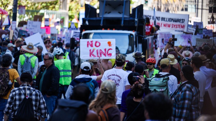 全美各地数百万人举行“不要国王”示威游行 特朗普:可我不是国王 在丁冬财经看资讯行情,选丁冬财经证券一站式开户交易>> ![]() 10月18日,在美国旧金山,人们参加示威游行活动。 新华社发 包括纽约、洛杉矶、华盛顿、芝加哥等主要城市在内的美国多地18日举行示威游行,反对暴力打击移民、强行派遣国民警卫队进入美国城市、加征关税等多项特朗普政府执行的政策。组织者称,参加抗议者多达数百万人。 据新华社报道,在纽约,超过10万人参加了当天的示威游行,其中包括美国国会参议院民主党领袖查克·舒默。当地时间11时许,大批人群陆续向曼哈顿时报广场集结,许多人手举写有“美国移民与海关执法局离开街头”“宪法不是可有可无”等字样的旗帜和横幅,高呼“没有法治就没有和平”等口号,游行队伍随后向曼哈顿下城缓慢行进。纽约市警察局说,和平示威游行队伍当天下午大部分已解散,警方未逮捕任何与抗议活动有关的人员。 曼哈顿居民戴维·卡波尼亚对记者说,美国农产品卖不出去,农民快破产了,物价也飞涨,数十亿本来用于医疗补助和联邦医疗保险的款项被挪作他用……一切都太糟糕了。 在加利福尼亚州圣迭戈,数千人在市政厅前举行示威集会,之后沿警方划定路线游行至海边,一路上不断有人加入。当地警局说,海边聚集的抗议人群达2.5万人。抗议者反对美国政府的移民、卫生、教育、贸易等多方面政策,打出了“关税是对我们征税”“要社会福利,不要富豪减税”“拯救科学事业”等标语。 游行组织方说,美国数百万人当天在逾2700个城镇参加了和平示威游行,这是6月14日首次全美“不要国王”抗议活动的延续。 美国共和党人士批评了游行活动。共和党籍众议院议长迈克·约翰逊15日称此次活动为“仇恨美国的集会”。 另据参考消息网援引美联社10月18日的报道称,大批民众于18日在全美多地集结,参与名为“不要国王”(No Kings)的抗议活动,反对总统特朗普的执政方向。而特朗普所属的共和党则将这些活动贬斥为“仇恨美国”集会。 报道称,抗议者举着“抗议是最爱国行为”“抵制法西斯主义”等标语,多地活动氛围更像是一场街头派对。现场有游行乐队演奏,还有抗议者身着充气服饰。其中青蛙造型尤为常见,这种服饰在俄勒冈州波特兰市已成为抵抗运动的象征。 这是特朗普重返白宫后美国民众举行的第三次大规模抗议集会,其背景是美国政府停摆。此次停摆不仅导致联邦项目与服务关停,还考验着美国核心的权力制衡体系。抗议组织者警告,特朗普政府作为强硬的行政分支,正以多种方式对抗国会与法院,这一趋势可能滑向威权主义。 报道还称,特朗普本人则在佛罗里达州的海湖庄园度过周末。 此前,特朗普在17日早些时候接受采访时说:“他们说把我比作国王,可我不是国王。”采访播出后,他前往自己的俱乐部,出席一场每位入场者需支付100万美元的“让美国再次伟大”委员会筹款活动。 报道说,抗议民众挤满了纽约的时报广场、波士顿广场和芝加哥格兰特公园,还聚集在田纳西州与印第安纳州的州议会大厦外、蒙大拿州比灵斯市的一个法院外,以及数百个小型公共场地。组织者称,当天计划举办的集会超过2600场。 报道提及,共和党对抗议者动机的攻击令许多人感到愤怒。在华盛顿,参加抗议的布莱恩·雷曼表示,一周来让共和党人喊作“恐怖分子”,确实“令人生厌”。 亚拉巴马州伯明翰市聚集了1500多人。身为4个孩子母亲的杰茜卡·约瑟说:“现在的美国让我感到陌生。”她与其他抗议者表示,在去年11月特朗普赢得近65%选票的亚拉巴马州聚集发声,让他们感受到了团结的力量。 美国民主党参议员克里斯·墨菲在接受采访时说:“这样的大型集会能给那些一直观望、但已准备好发声的人带来勇气。” 组织者称,此次“不要国王”抗议正凝聚所有反对力量。参议院少数党领袖查克·舒默等民主党高层,以及独立参议员伯尼·桑德斯均参与其中。在组织者看来,这一活动是对特朗普政府的反击。 6月14日,美国各地爆发约2000场示威游行,抗议活动以“不要国王”为名,反对特朗普政府移民、卫生、教育、立法等方面政策,共计数百万人参加。 全新妙想投研助理,立即体验 (文章来源:上观新闻) |