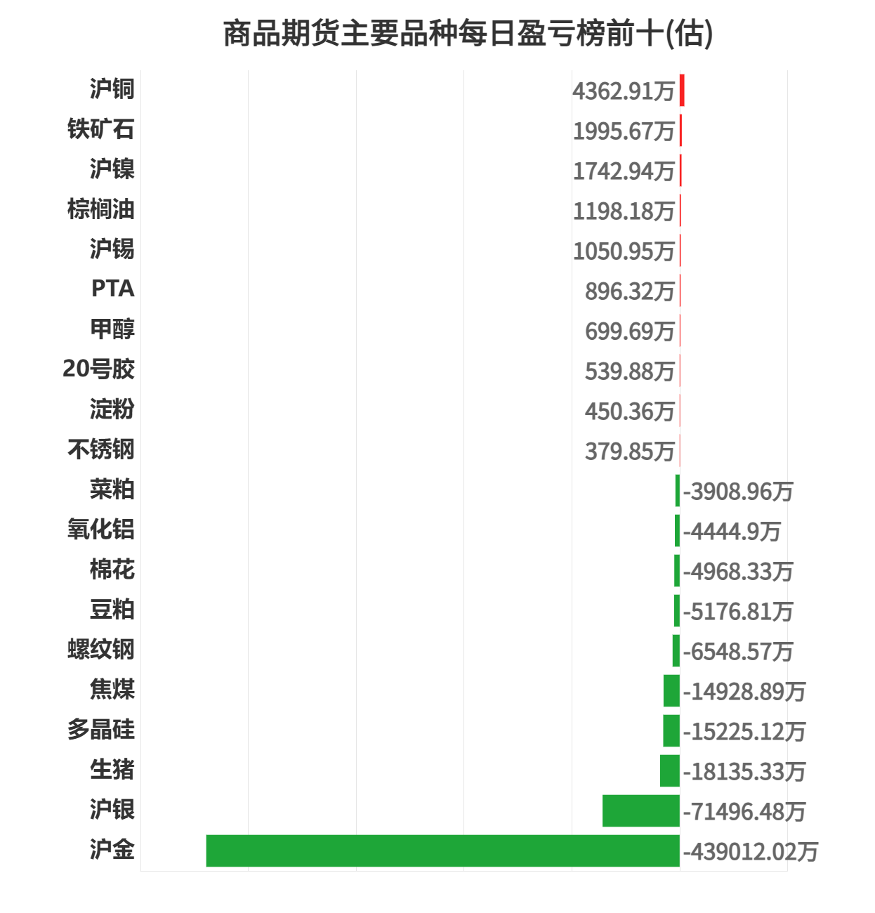 每日期货龙虎榜,带你深度了解市场。 市场一览:周一商品期货综合指数下跌2.57%,日内资金净流出80.16亿元。 市场成交量为2923.38万手,成交额为2.93万亿元。 持仓量为3921.53万手,较前一交易日增加13.78万手。 市场成交量前十和持仓量前十如下图所示: ![]() ![]() ![]() 品种盈亏榜:今日商品期货上榜机构席位中沪铜盈利第一,为4362.91万元。 沪金亏损第一,为439012.02万元。 ![]() 注:盈亏数据为对应龙虎榜持仓的估算数据。 您可通过点击丁冬财经期货APP资讯页面“龙虎榜”及丁冬财经期货PC端左侧“龙虎榜”查看各类席位持仓及盈亏榜单信息。点此查看>> ![]() ![]() 本信息来源于丁冬财经Choice数据,相关数据仅供参考,若数据有误,以交易所发布数据为准,不构成投资建议。 (文章来源:丁冬财经研究中心) |