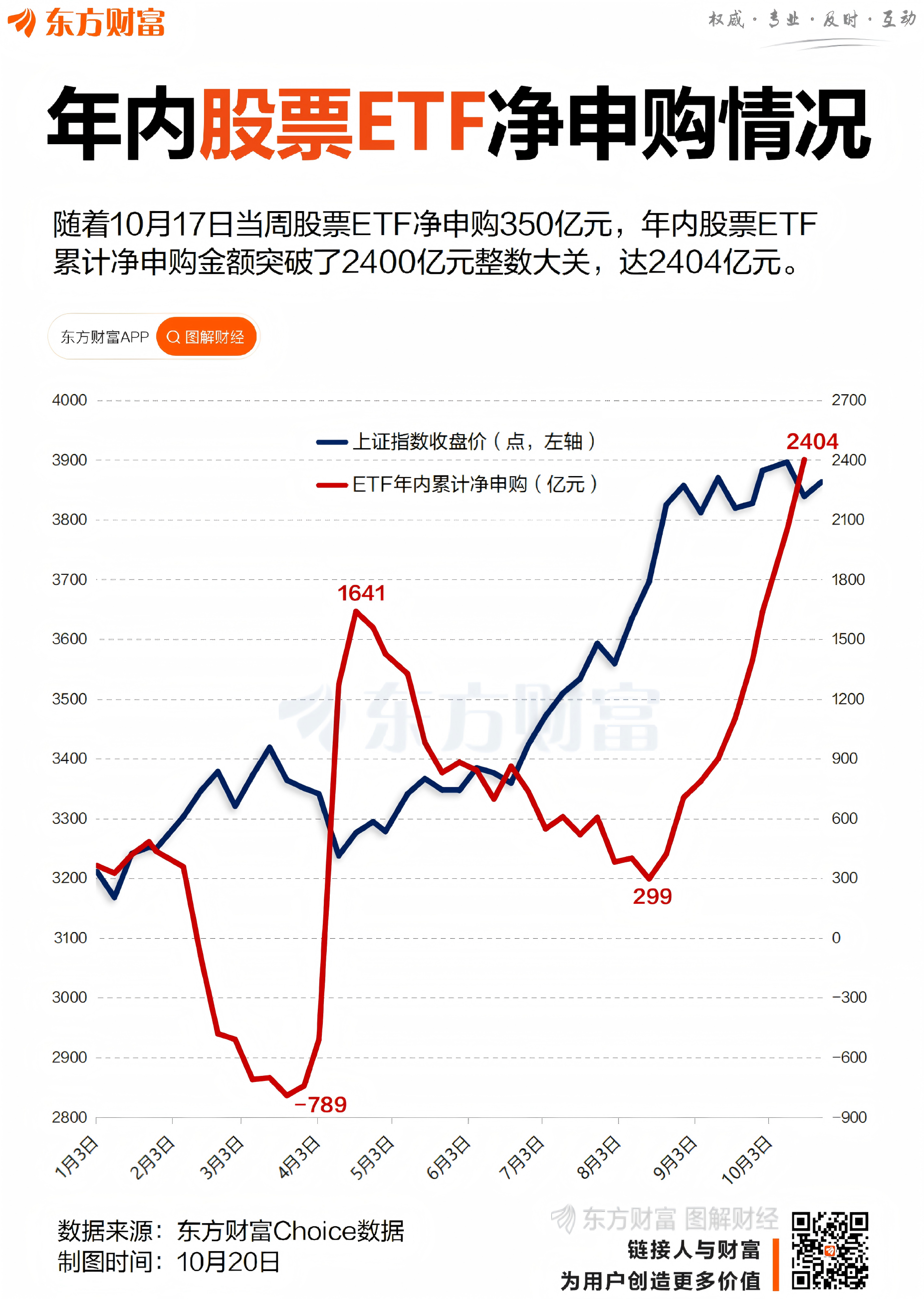 ![]() 继去年爆买1万亿元后,今年股票ETF市场依然热度高企,资金借道ETF入市趋势显著。 据东方财富Choice数据,随着10月17日当周股票ETF净申购350亿元,年内股票ETF累计净申购额突破了2400亿整数大关,达2404亿元。 2024年全年,股票ETF累计净申购1.04万亿元,超过了此前三年的净申购总和(9708亿元),为史上首次单年净申购突破1万亿元。 ![]() 细分来看,年内多只股票ETF吸金能力突出,净买入超百亿元的ETF达16只,跟踪港股、A股沪深300指数以及两地证券板块的股票ETF成为资金青睐的对象。 港股通互联网ETF是年内净申购最多的股票ETF,净申购额达562亿元;证券ETF次之,年内净申购291亿元;华夏沪深300ETF紧随其后,年内净申购280亿元。此外,港股通科技30ETF和香港证券ETF年内净申购额也均超200亿元。 年内净赎回居前的股票ETF主要是跟踪科创板和创业板的宽基ETF。其中,科创50ETF是年内净赎回最多的股票ETF,净赎回金额超第二名创业板ETF一倍有余,创业板50ETF、科创板50ETF的净赎回金额也均超100亿元。