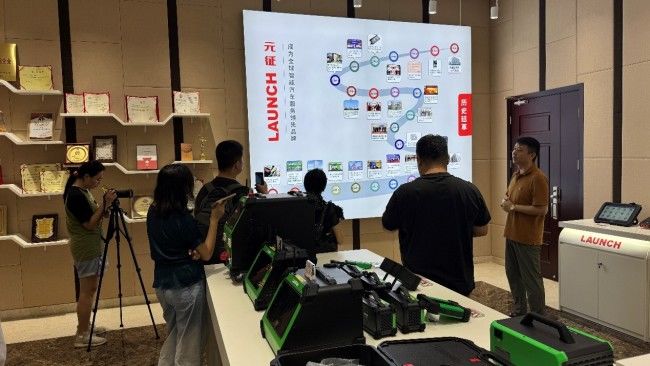 (*注:本次来访媒体有中国商报、晶报、香港商报、深圳卫视第一现场、深圳特区报、深圳晚报、深圳商报、龙岗融媒等8家媒体单位) 作为深圳市行业领袖企业百强评选组委会评选出来的“2025深圳行业领袖企业百强”之一,元征科技自创立以来,伴随改革开放历程逐步发展壮大。在刘菁哲总监的引导下,媒体团参观了企业展厅,系统了解了元征超过30年的发展脉络,包括从早期科技产品到近年推出的超级远程诊断平台、AI智能诊断和新能源诊断等多项技术成果。此外,还通过大屏幕实时数据看板,介绍了元征的全球业务布局及诊断大数据等公开信息。