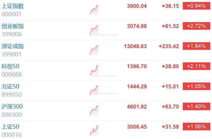 格隆汇10月21日|A股持续拉升,创业板指涨3%,上证指数涨近1%重回3900点,深成指涨近2%。CPO、存储芯片、培育钻石、工程机械、苹果概念股涨幅居前,全市场超4300只个股上涨。