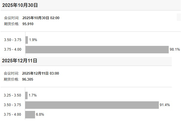 经历10月21日的暴跌后,COMEX黄金10月22日在经历盘初的闪崩后出现反弹,日内最高触及4175美元。不少市场人士认为,本次黄金的大跌更像是快速上涨后的正常回调。而特朗普有关于与普京会面的最新表态,又让市场担忧了起来。 俄乌局势又生变数了? 综合市场观点来看,10月21日国际金价的暴跌,很大程度上与俄乌的“停火”讨论,所带来的避险情绪消退相关。不过现在,局势又有了新的变化。 据新华社报道,法国总统府10月21日发布一份多名欧洲领导人(包括乌克兰总统泽连斯基)关于乌克兰问题的联合声明,称“强烈支持”美国总统特朗普在乌克兰问题上的立场,即俄罗斯与乌克兰立即停火,以当前战线作为谈判起点。 特朗普也在社交媒体上发文说,他“强烈建议”俄乌达成协议,“应当就地停下”,“各自宣称胜利”。他还表示,俄乌应按当前战线“割裂”顿巴斯地区,划界停火、各自撤兵。有媒体解读称,按照特朗普的方案,顿巴斯地区大部分土地将交由俄罗斯控制。 不过,特朗普与普京在布达佩斯的会晤可能被搁置的消息,再次让俄乌局势蒙上了阴影。据新华社报道,特朗普10月21日称,原定会面被搁置,因为他不想“浪费时间”。“我不想举行一场毫无意义的会面。”他说,“我不想浪费时间——所以我们看看会发生什么。” 另据中国新闻网援引报道,当地时间10月22日凌晨,俄罗斯对乌克兰发动大规模空袭,基辅等乌克兰城市发生爆炸。有投资人士表示,这一连串的“变数”,无疑会使得此前消退的避险情绪卷土重来。 美国政府继续停摆 事实上,当前市场谈论避险情绪,并不仅仅是地缘政治问题,美国政府停摆仍悬而未决,全球严峻的贸易摩擦问题,同样会带动市场的避险情绪。 拿美国政府停摆来说,自当地时间10月1日起,美国联邦政府时隔7年后再次“停摆”,目前已超过20天时间。而白宫经济顾问委员会的一份备忘录显示,“停摆”每持续一周,就可能导致美国GDP损失150亿美元。 而随着时间的推移,本次停摆已开始影响到一些关键机构。据央视新闻报道,当地时间10月20日,负责美国核武器储存管理的关键机构——美国能源部下属的美国国家核安全管理局开始让大部分员工强制休假。这是该机构自成立以来,首次遭遇此类情况。 美联储大概率继续降息 除了避险情绪对金价的影响外,“美联储降息”也是金价讨论中的关键词。美联储利率观测工具的最新数据显示,美联储10月降息25个基点的概率高达98.1%,降息50个基点的概率为1.9%。也就是说,不降息的概率为0。 待到12月份,美联储再次降息25个基点的概率为91.4%,降息50个基点的概率为1.7%,保持利率不变的概率为6.8%。换句话说,从目前的预测数据来看,美联储10月、12月连续降息25个基点将是大概率事件。 ![]() 摩根士丹利金属与矿业商品策略师艾米·戈维尔表示,回顾从20世纪90年代至今的历史,平均而言,在美联储降息周期开始后的60天内,黄金和白银的价格分别上涨了6%和 4%,因为降息将使得黄金这类非收益性资产更有竞争力。 KCM交易公司首席市场分析师Tim Waterer也表示,虽然获利了结操作与避险资金流减弱共同作用导致黄金承压,但只要美联储维持当前的降息路径,黄金价格的任何回调都将被视为买入机会。只要本周晚些时候公布的美国消费者物价指数(CPI)数据未出现意外上涨,当前的黄金涨势就仍有上行空间。 后市黄金是涨还是跌? 在经历金价的大幅回调之后,后市黄金该如何走,无疑就成了市场关注的焦点。综合市场来看,更多的分析师认为,这是一次早该出现的抛售,但这可能并不意味着金价涨势将就此结束。 StoneX市场分析师Fawad Razaqzada表示,考虑到之前金价一路飙升,周二的这种抛售迟早会发生。但值得指出的是,许多投资者错过了这轮大涨。很快,他们可能会进场,逢低买入,这应该会抑制抛售。所以说,现在就认为黄金整体牛市趋势已经结束还为时过早。 世界黄金协会美洲地区首席执行官兼全球研究主管Juan Carlos Artigas也认为,金融市场在经历了一段时间的快速上涨之后出现回调是正常的,就像黄金正在经历的那样。但金价的上涨是受到强劲基本面推动的,比如地缘经济不确定性上升、美国货币供应稳步增加,以及利率下调。据此,黄金投资市场尚未饱和,仍有增长空间。 也有机构表示了谨慎,认为当下黄金市场交易过热,存在波动风险。华安基金指出,根据沪金主力平值IV指标,本轮黄金交易的波动率已经达到较高水平,历史上与2024年4月18日、2024年10月30日、2025年4月类似,数值均超过20。指标的含义是黄金期权的隐含波动率,可以作为交易拥挤度的参考,指标值较高提示短期交易过热风险。前期黄金上涨的逻辑,包括9月美联储重启降息周期、美国政府停摆、关税扰动等,目前在资产价格中已经有较为充分的体现。