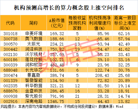 随着数字化转型加速推进以及各类数字应用场景的涌现,算力重要性不断凸显。 中铝国际午后涨停 今日(10月22日)午后,中铝国际(601068)股价在14:26左右突然拉升,股价由绿盘瞬间翻红,10分钟内封住涨停板。截至收盘,该股涨停板封单6.31万手,最新收盘价创近2年新高。 中铝国际控股股东为中国铝业集团有限公司,是提供有色金属先进技术、成套装备、集成服务综合解决方案的新型工程技术企业,业务主要包括设计咨询、EPC 工程总承包及施工、装备制造。今年上半年,公司营业总收入达到96.98亿元,净利润为1.03亿元。 今日盘面上,除中铝国际外,建筑股中化岩土、北新路桥也录得涨停板。中岩大地、深水规院、北方国际、建科院、文科股份等涨超5%。 工信部:到2027年围绕基础通用、算力设施等方面制修订50项以上标准 10月21日,工信部公开征求对《算力标准体系建设指南(2025版)》(征求意见稿)的意见。征求意见稿提出,到2027年,围绕基础通用、算力设施、算力设备、算网融合、算力互联、算力平台、算力应用、算力安全、绿色低碳等方面制修订50项以上标准,有效推动算力标准体系建设。开展标准宣贯和实施推广的企业超过500家,形成一批标准应用案例,标准服务企业创新发展的成效更加凸显。积极推进科研机构、行业协会、产业联盟协同的标准研发机制,不断促进技术创新、产业化推广、基础设施建设、人才培养等方面的交流与合作,有效支撑全国一体化算力网建设。 算力产业主要涉及基础设施、算力设备、管理与服务、应用赋能、安全保障和绿色低碳等部分。在新一轮科技与产业革命加速演进的背景下,中国算力产业已形成了涵盖通算、智算、超算在内的多样化算力供给体系。 近年来,我国算力总规模年增速达到30%左右。在人工智能的快速发展带动下,智能算力需求呈现迅猛增长态势。工业和信息化部副部长熊继军此前在2025中国算力大会上表示,截至2025年6月底,中国智能算力规模达788EFLOPS,占全球总规模的32%,稳居全球第二。 浙商证券认为,2025年前三季度,全球AI高景气延续,应用侧持续发力,OpenAI发布Sora2,多模态应用迎来奇点时刻,Oracle、谷歌等头部大厂保持高投入,英伟达GB300等超节点方案加速发货,ASIC出货比例有望逐步提升,光模块、液冷等细分领域业绩增长最为明显。国内头部互联网公司AI基础设施投入有望加速,国产算力公司有望进入快速增长期。 9只算力概念股业绩报喜 从目前已披露的业绩数据来看,按照三季报、业绩快报、预告净利润下限(无下限则取公告数值)计算,今年前三季度净利润同比增长(含扭亏为盈)的算力概念股有9只,如仕佳光子、寒武纪-U、鼎通科技、光库科技、智微智能等。 ![]() 仕佳光子今年前三季度净利润为3亿元,同比增长727.74%。报告期内,受人工智能发展驱动,数通市场快速增长,公司适应市场需求,产品竞争优势凸显,客户认可度提高。光芯片和器件、室内光缆、线缆高分子材料的产品订单同比实现不同程度增加。 寒武纪-U今年前三季度净利润为16.05亿元,同比扭亏为盈,这是历史同期首次盈利。报告期内,公司持续拓展市场,积极助力人工智能应用落地,使得营收较上年同期大幅增长。 鼎通科技今年前三季度净利润为1.77亿元,同比增长125.39%。报告期内,公司通讯连接器业务增长带来营业收入大幅增长,前三季度实现营业收入11.56亿元,同比增长64.45%。 算力概念牛股辈出 从二级市场表现来看,算力概念股诞生多只翻倍牛股。据证券时报·数据宝统计,截至10月22日,今年以来有21股累计涨幅翻倍,其中胜宏科技、新易盛、仕佳光子、中际旭创、源杰科技累计涨幅排在前五位。胜宏科技年内累计上涨564.6%,高居榜首。 未来这些概念股是否仍有上涨空间?机构的研报或能提供一定参考。根据5家以上机构一致预测,今明两年净利润增速均有望超20%的概念股有38只。以10月22日收盘价与机构一致预测目标价相比,14股上涨空间超过13%。 申菱环境上涨空间62.16%,排在第一位。公司业务更多聚焦于数字与算力,电力与能源这两大应用领域。中银证券研报认为,申菱环境在2024年中国智算行业液冷数据中心市场厂商排名第一。2025年1—8月,公司数据服务板块总体新增订单约为去年同期的2倍,随着订单陆续交付落地,预期未来相关业务将实现可持续的良性增长。 上涨空间较大的还有奥飞数据、太辰光、润泽科技、沃尔核材、莲花控股等。 ![]()