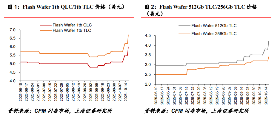 9月以来得益于强劲基本面,存储板块多股表现强劲,东方财富Choice数据显示,香农芯创涨超150%,江波龙、聚辰股份分别上涨近90%与涨超70%;协创数据、佰维存储、精智达、华虹公司、兆易创新、万润科技等个股同期涨幅也在56%至30%之间不等。 值得注意的是,涨幅靠前的多股获得了杠杆资金的青睐,兆易创新、香农芯创、通富微电、协创数据、北京君正等多股9月以来融资净买入均超10亿元,其中兆易创新融资净买入接近19亿元,排名第一;香农芯创融资净买入超16亿元,排名第二。 ![]() 上海证券10月21日研报显示, Flash Wafer (存储芯片晶圆)价格近一周最高涨幅超 10%。根据 CFM 闪存市场报价显示,10 月 17 日 Flash Wafer 价格全面上调,其中 1Tb QLC 涨幅9.09%、1Tb TLC 涨幅 8.06%、512Gb TLC 涨幅 10.53%、256Gb TLC涨幅 6.25%。 ![]() 上海证券表示,全球存储芯片价格持续上涨,涨价潮蔓延至中下游,涨价逻辑+需求端AI驱动,存储行业或迎超级周期。 AI数据中心建设带动存储需求 综合专业观点看,这轮“超级周期”由AI驱动,数据中心大容量存储需求高速增长,叠加智能手机、智能汽车等智能终端渗透率提升,共同推动本轮存储技术创新与市场扩容。 天风证券电子行业高级分析师李泓依表示,本轮存储“超级周期”的本质是从“周期”到“结构”的转变。以往芯片行业价格上涨、交期延长主要是因为供给端减产引发短期反弹,而当前由AI驱动的“超级周期”具有显著的结构性特征。 AI技术的蓬勃发展带动数据中心大容量存储需求高速增长,叠加智能手机、智能汽车等智能终端渗透率不断提升,共同推动本轮存储技术创新与市场扩容。 本月初,三星电子与OpenAI签署意向书,将作为OpenAI的战略存储合作伙伴,为OpenAI的“星际之门”项目提供半导体解决方案。OpenAI对存储芯片的月需求量预计将高达90万片DRAM(动态随机存取存储器)晶圆,三星将协助满足这一需求。 据上证报,佰维存储有关负责人表示,随着生成式AI的发展从训练迈向规模化推理,北美云服务商(CSP)正加速部署高效能推理基础设施,带动整体存储需求持续攀升。目前,北美云服务商的AI服务日均调用量达数亿次,且随着Sora等多模态模型普及,单次请求数据量从KB级跃升至GB级,显著提升了对存储带宽与容量的需求。在此背景下,传统HDD(机械硬盘)因交付紧张、性能受限,已难以满足冷数据存储需求,推动SSD(固态硬盘)渗透率快速提升。 “在消费端,生成式AI正加速向终端侧延伸,AI手机、AI PC、AI眼镜等智能设备对大容量、高性能存储的需求持续上升,推动LPDDR5X、UFS 4.0、PCIe Gen5 SSD等高端存储产品进入增长通道。”上述负责人表示。 存储涨价提振国内上市公司盈利预期 随着三星、SK海力士、美光等原厂将产能加速转向DDR5、HBM等高利润产品,传统DDR4及更早期的利基型存储产品出现阶段性供给缺口。 根据TrendForce集邦咨询,受NAND Flash需求疲软、价格压力等因素影响,Micron(美光)、Samsung(三星)、SK hynix(SK海力士)等海外原厂启动相关减产计划。 产品涨价也为国内存储产业链上市公司带来了乐观的盈利预期。 兆易创新的相关负责人则表示,海外大厂普遍把产能投向HBM等高毛利产品,在现货紧缺的情况下,高性能存储产品毛利率可达到70%左右,传统存储产能相应下滑,预计传统存储利基产品缺货涨价情形将持续。 SK海力士核心代理商香农芯创表示,市场价格变化最终会体现在采购和销售价格上;自产的相关产品价格最终由市场竞争等因素决定。毛利率方面,公司当期销售和采购的产品毛利率相对稳定,上行期间的库存跨期销售会提升毛利率。 国产化SSD解决方案提供商德明利表示,目前存储价格受供需结构及新兴需求等因素影响,行业价格整体呈持续向上态势,对产业链相关企业盈利改善形成积极支撑。 集邦咨询分析师许家源表示,进入第四季度,随着北美云服务商陆续释放出积极的2026年全年DRAM需求展望,预计带动DRAM整体需求增长及价格上涨,动能延续至2026年。