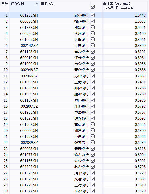 10月23日,市值超2万亿元的农业银行(601288.SH/01288.HK)在A股市场上演戏剧性一幕。当日开盘,农业银行盘中涨幅一度超过2%,股价继续创出历史新高,然而随后出现大幅跳水。截至收盘,农业银行报7.99元/股,下跌1.24%,日K线收阴,终结了14连阳。 在此之前,农业银行上涨行情可谓气势如虹。自9月25日以来,农业银行股价实现了14连阳,累计涨幅超过20%,远超同期大盘表现。 对于农行今日盘中跳水一事,著名经济学家盘和林向21财经·南财快讯记者表示,此前农行涨势较为迅猛,回调属于意料之中的事情,今天股价跳水属于阶段性调整,后续农行股价走势可能会逐步走稳。 前海开源基金首席经济学家杨德龙同样认为,近期市场出现调整,在此情况下,估值低,分红率较高的农行契合了一部分追求稳定回报投资者的需求。而农行近期的连续走强,已累积了一定的获利盘,在板块轮动行情下,盘中回调也属正常。 事实上,将周期拉长,今年以来,农业银行股价涨幅已达56.35%,而同期工行、建行、中行、交行、邮储银行的股价涨幅分别为18.05%、11.49%、4.08%、-2.49%和10.83%,农业银行股价表现显著跑赢其他国有大行,成为当之无愧的“领涨者”。 股价持续攀升之下,农业银行总市值也随之升至2.71万亿元,超过工商银行的2.59万亿元,成为目前A股总市值最高的上市公司。 而除市值外,农业银行的估值指标也发生了积极变化。10月17日盘中,农业银行A股市净率时隔7年多再次站上1倍关口,打破了国有银行长期“破净”(即市净率低于1倍)的局面。截至10月23日收盘,农业银行市净率为1.04倍,超过招商银行,是42家A股上市银行中仅有的两家市净率超过1倍的银行之一。 ![]() 市净率前30的上市银行股 盘和林指出,农行经营向来稳健,且受到房地产行业波动影响较弱,因此近期业绩表现较其他银行要好。此外,政策面要求破净上市公司主动进行市值管理,所以,这也是农行积极市值管理的成果。 杨德龙则表示,农行市净率恢复到一倍以上属里程碑的事件,有望对整个银行股起到表率提振作用,或将带动其他银行股回升。 从业绩来看,在近期银行业面临息差收窄的大环境下,农业银行仍交出一份亮眼成绩单。财务数据显示,2025年上半年,农业银行实现营业收入3699.37亿元,同比增长0.85%;归属于母公司股东的净利润1395.1亿元,同比增长2.7%。其净利润增速在国有行中居首。 此外,截至2025年6月末,农业银行不良贷款率1.28%,较年初下降0.02个百分点;拨备覆盖率295%,拨备余额和拨备覆盖率均居可比同业首位。 不过,尽管农业银行股价的强势表现有其基本面支撑,但盘和林仍提醒,农行业绩表现稳健,资产质量优秀,但同时也意味着农行的增长率可能不会太高,未来应该还是保持稳健为主,对于投资人,此类投资主要期待的是股息,而股价太高会影响股息率,所以,稳定将是大势所趋。