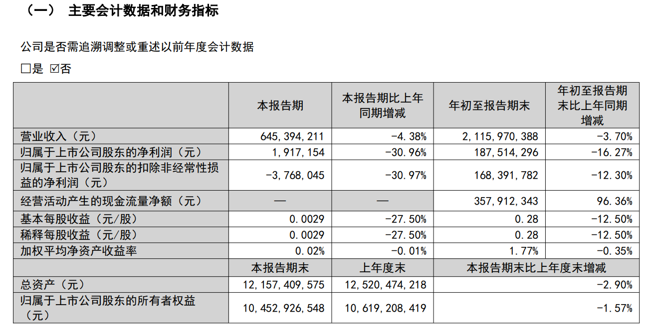 K 线图 特色数据 资金流向 公告 个股日历 核心题材 ![]() ![]() 最新价:21.86 涨跌额:-0.02 涨跌幅:-0.09% 成交量:9545手 成交额:2089万 换手率:0.21% 市盈率:58.74 总市值:147亿 查询该股行情 实时资金流向 深度数据揭秘 进入张 裕A吧 张 裕A资金流 在丁冬财经看资讯行情,选丁冬财经证券一站式开户交易>> 国产葡萄酒龙头张裕A前三季度营收和净利润双降,单季度扣非净利润仍亏损。 10月24日,烟台张裕葡萄酿酒股份有限公司(张裕A,000869.SZ)披露2025年第三季度报告,前三季度公司实现营业收入21.16亿元,同比下降3.70%;归母净利润1.88亿元,同比下降16.27%。 其中,第三季度营业收入6.45亿元,同比下降4.38%;归母净利润191.72万元,同比下降30.96%。 ![]() 从核心盈利能力来看,第三季度公司扣非归母净利润仍亏损376.8万元。财报显示,期内公司计入当期损益的政府补助高达675.8万元,此外,公司转让下属企业股权产生的投资收益为104.14万元。上述两项非经常性损益合计高达779.94万元。 据Wind数据,张裕A前三季度营收已连续三年下滑,而净利润已四连降。 ![]() 张裕A近年来业绩表现,来自Wind数据 此外,三季报显示,报告期内,公司财务费用同比下降834.02%,主要是汇兑损益的影响所致;其他流动负债同比下降59.18%,主要是预期销售退回金额减少所致;资产减值损失同比增长149.10%,主要是存货减值所致。 公开资料显示,张裕A成立于1997年,前身为1892年张弼士创立的张裕葡萄酿酒公司,总部位于山东烟台,主营葡萄酒、白兰地、香槟及保健酒生产销售。三季报显示,公司第一大股东为烟台张裕集团有限公司,持股比例为51.42%。 据Wind数据,2021年至2024年,张裕A的营业收入分别为39.53亿元、39.19亿元、43.85亿元、32.77亿元,同比增速依次为16.42%、-0.86%、11.89%、-25.26%;对应的归母净利润分别为5亿元、4.29亿元、5.32亿元、3.05亿元,同比增速依次为6.21%、-14.28%、24.20%、-42.68%。 关于2025年预期,5月23日,张裕A召开2024年度股东大会和投资者交流会。公司总经理孙健在会上表示,“首先我们要努力完成预算目标,在去年完成32.77亿元的基础上,我们今年提出来不低于34亿元,应该说只增了几个点。说实话,这个预算水平,与张裕目前面临的行业态势,和正常情况下张裕年内能够组织起来的现实运营水平,还是比较相称的,并不算保守。” 依此来看,今年前三季度21.16亿元的营收,相比全年目标34亿元,仅完成了62%。 当前,国内葡萄酒市场行业处于深度调整期,面临着消费需求不足和进口产品的竞争等多重压力。国家统计局数据显示,2025年1-9月,全国规模以上企业葡萄酒产量为6.5万千升,同比下降22.6%。 上半年,A股市场五家葡萄酒上市公司业绩分化,除张裕A和中信尼雅盈利外,威龙股份、ST通葡、莫高股份均亏损。上述五家公司上半年营收共计22.33亿元,张裕A以14.71亿元的营收,大幅领先其他四家。 对于行业发展,张裕A在半年报中表示,报告期内,国内葡萄酒市场仍然保持了下滑势头,市场需求严重不足,市场竞争十分激烈,葡萄酒企业盈利能力进一步下降,葡萄酒在酒类产品的市场份额越来越小,加之受其他优势酒种挤压,行业发展态势仍然在低位徘徊,还没有止跌回升的明显迹象。 同时,公司也在半年报中指出,“从长远来看,我们仍然坚持以往的判断,始终认为:随着人们收入水平提高,更加追求轻松、浪漫和健康的生活方式,现有消费观念可能会发生转变,国内葡萄酒会更多被大众饮用,葡萄酒将进入越来越多的家庭消费,目前国内葡萄酒平均消费水平过低的情况会逐渐改善。” 截至10月24日收盘,张裕A报21.86元/股,跌0.09%;今年以来累计跌3.91%。 全新妙想投研助理,立即体验 (文章来源:澎湃新闻) |