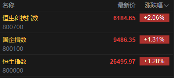美股上周五表现向上,美国上月通胀数据低于预期,市场憧憬联储局进一步减息,利好大市气氛,三大指数均录得升幅收市。美元反复靠稳,美国十年期债息维持于4厘水平,金价表现受压,油价亦走势向下。 今日港股三大指数集体高开,恒生指数涨1.28%,报26495.97点,恒生科指涨2.06%,国企指数涨1.31%。盘面上,科网股普涨,百度、阿里巴巴涨超3%,联想、哔哩哔哩、快手涨超2%,腾讯、京东、网易涨超1%;芯片股高开,华虹半导体涨超5%;创新药概念股多数上涨,药明康德(603259)涨超7%;苹果概念普涨,鸿腾精密涨超5%;中资券商股活跃,国联民生涨超2%。
