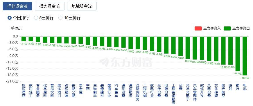 行业板块多数收涨,电子化学品、小金属、船舶制造、能源金属、半导体、钢铁行业、电子元件板块涨幅居前,风电设备、游戏板块跌幅居前。