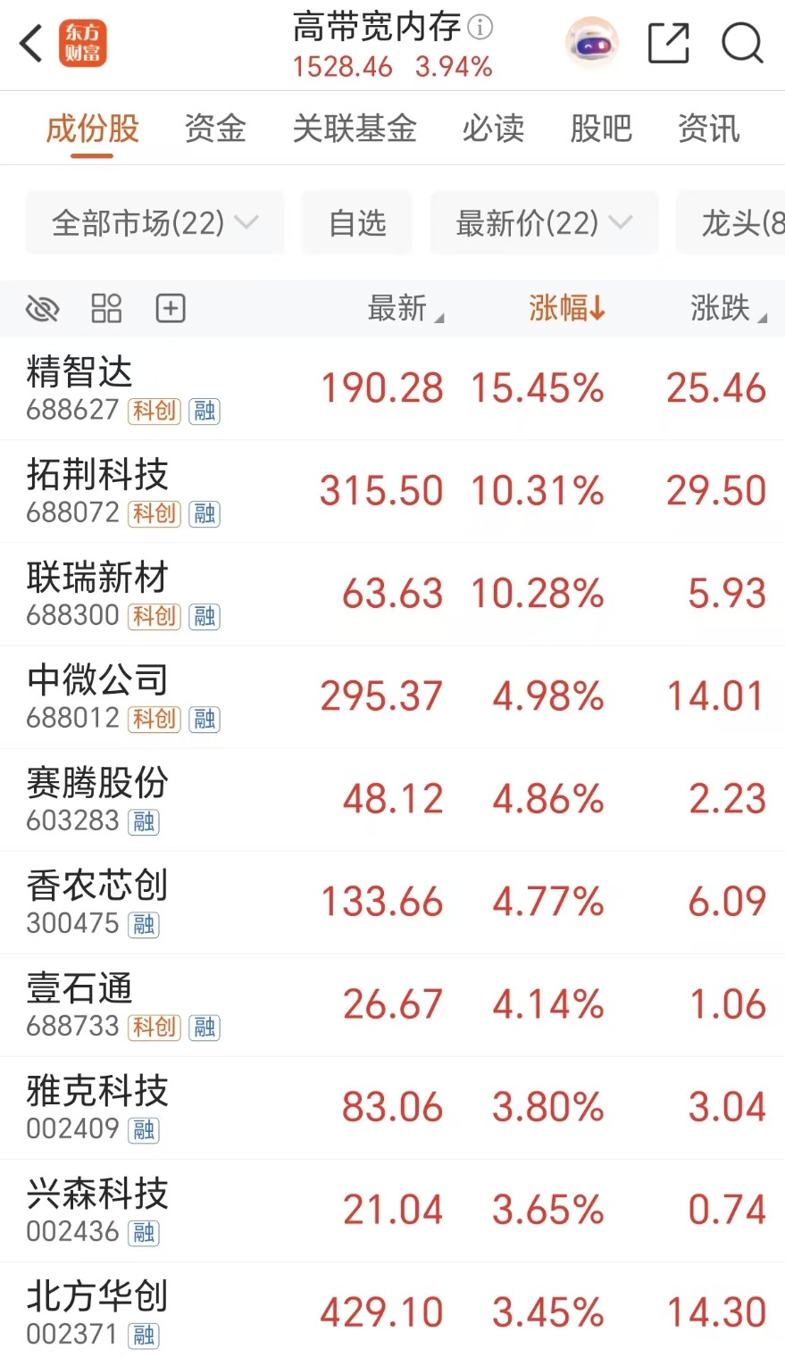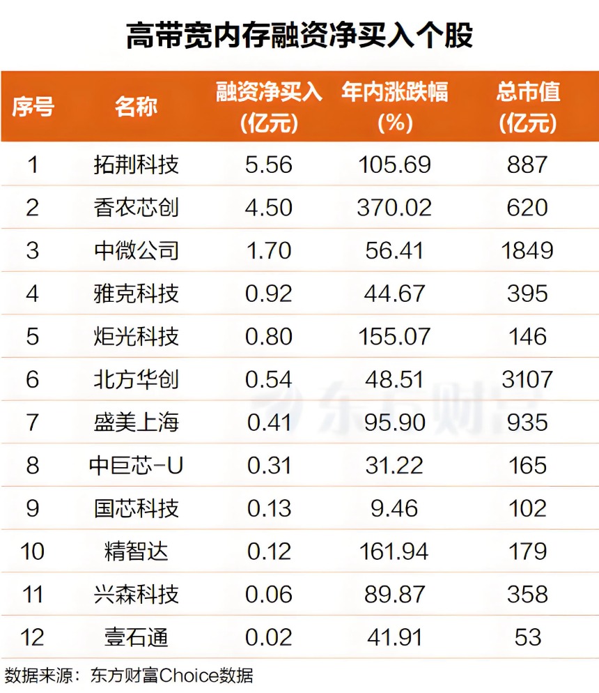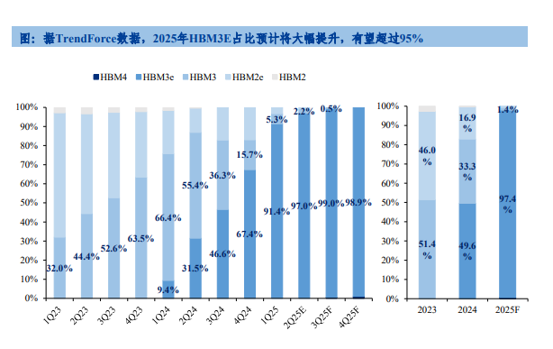 周一(10月27日)高带宽内存(HBM)板块狂涨近4%,精智达涨超15%,拓荆科技、联瑞新材涨超10%,香农芯创、雅克科技等跟涨。 ![]() 所谓高带宽内存(HBM,High Bandwidth Memory)是一种专为高性能计算和图形密集型应用设计的DRAM技术。HBM通过采用3D堆叠封装技术和硅通孔(TSV)技术,将多个DRAM芯片垂直堆叠在一起,显著提升数据传输的带宽和效率,同时保持较低的功耗,这种结构不仅增加了存储密度,还缩短了数据传输路径,实现了高速数据通信。 随着大模型参数规模与训练数据量的爆炸式增长,传统内存技术已成为制约算力发挥的“内存墙”,而HBM凭借其超高带宽、低功耗和小体积特性,正成为AI芯片的主流选择。 三大原厂已布局 HBM供应紧缺 综合消息面看,全球内存三大原厂均已深度布局高带宽内存。 在日前的财报会上,美光特别强调,预计半导体芯片、特别是HBM的供不应求情况将会加剧。公司CEO Sanjay Mehrotra透露,当前半导体存储领域,DRAM库存已低于目标水平,NAND库存持续下滑;而HBM产能需求增长显著,产能已被锁定,预计2026年HBM出货量增速将超过整体DRAM水平,成为半导体存储板块的核心增长驱动力。 具体HBM产品中,美光表示,已与几乎所有客户就2026年绝大部分HBM3E产能达成定价协议;公司正在与客户就HBM4进行讨论,供应“非常紧张”。 SK海力士也维持2025年HBM收入同比翻倍目标不变,12Hi HBM3e产品今年仍占主导,公司指引2024-2028年HBM收入CAGR为50%;公司目前已经向客户提供首批HBM4样品验证 三星财报显示,25Q2 HBM 销量环比增长约 30%,其中 HBM3E 产品占比扩大至超 80%,公司预计 25H2 HBM3E 销售占比超 90%;公司表示 HBM4已经完成开发,向主要客户送样 HBM3E成主流国内厂商已布局 长江证券研报显示,HBM3E代际为当前主流,据TrendForce预测,2025年HBM3E市场份额大幅提升,占比有望超过95%。 TrendForce预测,2026年HBM市场总出货量预计将突破30 Billion Gb,HBM4的市占率则随着供应商持续放量而逐季提高,预计于2026年下半年正式超越HBM3e系列产品,成为市场主流。 ![]() 据东方证券研报,长鑫存储计划在2025年底前交付第四代高带宽存储器样品(HBM3),并预计从2026年开始全面量产;此外,长鑫存储还设定了2027年开发第五代HBM(HBM3E)的目标。先进存储的持续突破,将带动产业链上游设备行业的需求快速增长,国产设备有望深度受益。 国元证券近期研报显示,长江存储正积极寻求技术突破,计划开发用于生产HBM(高带宽内存)的关键技术——TSV先进封装,并考虑将其新建的武汉工厂部分用于生产DRAM芯片。 此外,华为也在近期宣布,自昇腾950PR开始,昇腾AI芯片将采用华为自研的HBM。其中,昇腾950搭载自研的HBM HiBL 1.0;昇腾950DT升级至HBM HiZQ 2.0。 杠杆资金抢筹 多股年内已翻倍 东方财富Choice数据显示,高带宽内存板块自10月17日反弹以来,12只个股获得杠杆资金抢筹,其中拓荆科技排名第一,融资净买入近6亿元,该股年内至今涨幅已经翻倍;香农芯创排名第二,融资净买入近5亿元,年内之间涨幅超370%。 中微公司、雅克科技、炬光科技、北方华创、盛美上海、中巨芯-U等个股融资净买额在1.7亿元至4000万元之间不等。 ![]() 从机构观点看,高带宽内存板块中,年内涨幅较大个股偏设备端与代销端。 比如拓荆科技,据方正证券,公司的薄膜沉积设备,如PECVD、ALD及SACVD,是HBM制造过程中的关键设备,用于在芯片上沉积薄膜,以实现高密度、高性能的存储功能。随着HBM技术的演进,如HBM4的开发,拓荆科技的设备在支持更高带宽、更小节点的存储器生产中扮演着重要角色。 又比如精智达,据中泰证券,公司作为国内领先的半导体测试设备供应商,已成功开发出存储器通用测试验证机,并获得批量订单,特别是在HBM测试机领域,精智达的测试机工程样机已经搬入客户现场进入验证阶段,显示出公司在HBM测试设备方面的技术实力和市场潜力。 而香农芯创则是SK海力士代销商。华创证券表示,公司国内领先的半导体分销商,香农芯创拥有全球全产业存储器供应商之一的SK海力士的代理权,这为香农芯创在HBM领域的业务拓展提供了坚实的基础。 民生证券认为,从产业链来看,HBM产业上游主要包括电镀液、前驱体、IC载板等半导体原材料及TSV设备、检测设备等半导体设备供应商;中游为HBM生产,下游应用领域包括人工智能、数据中心以及高性能计算等。在HBM制造中,TSV工序是主要难点,其涉及光刻、涂胶、刻蚀等复杂工艺,是价值量最高的环节。国产HBM量产势在必行,当前国产HBM或处于发展早期,上游设备材料或迎来扩产机遇。