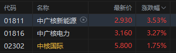 核电股涨幅居前,中广核新能源涨超3%。国家能源局核电司司长曾亚川日前介绍,2024年全球核电发电量已创近十年新高,且增势预期依然强劲。多家国际权威机构连续四年上调核能发展预期,预计到2050年,全球核电装机规模将突破9亿千瓦,实现翻倍增长。