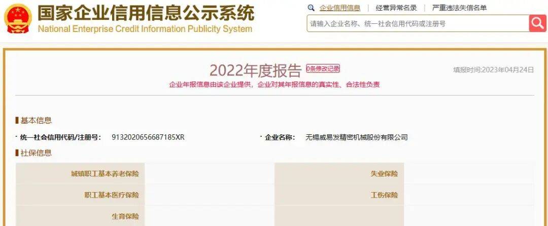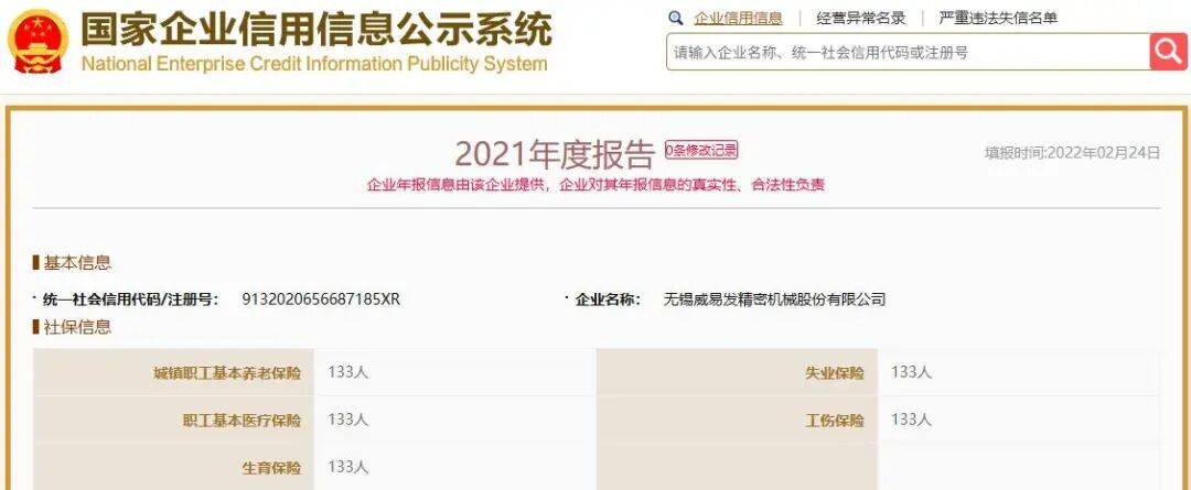 (截自企查查) 且毅合捷此前曾冲刺创业板IPO未果,其招股书中确认的成立时间亦是2013年6月,且未披露存在任何前身主体。 此外,除了客户信息披露存在疑点外,威易发在员工社保缴纳方面的披露也与官方信息存在差异。 根据招股书,威易发报告期内无控股、参股子公司或分公司,各期末员工人数分别为152人、168人、241人和258人,各期社保缴纳人数分别为130人、141人、228人和243人。 然而,企信网工商年报显示,2021年威易发五项社会保险的缴纳人数均为133人;2022年未披露相关数据;2023年各险种缴纳人数则为234人。对比招股书同期的员工社保缴纳人数,两者之间存在出入。