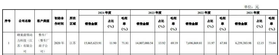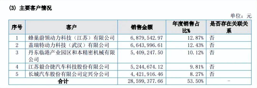 本文授权来自《中国民商》 作者:方 升 编辑:张佳茗 2024年12月26日,江苏省专精特新中小企业、高新技术企业――无锡威易发精密机械股份有限公司(以下简称“威易发”)的IPO申请材料获北交所受理,此番冲刺北交所,威易发聘请开源证券担任保荐机构,审计机构为天健会计师事务所。 根据招股书,威易发拟向不特定合格投资者公开发行不超过1000万股,募集资金约1.72亿元,计划用于“金属密封件智造项目”、“研发中心建设项目”以及补充流动资金。《民商财经》在查阅公开信息及公司申报材料后发现,威易发在信息披露方面仍存在值得关注的疑点。 与客户合作时间早于对方成立时间 自2010年创立以来,威易发始终专注于金属密封件的研发、生产与销售,主要产品包括合金密封环、镍基合金密封环和C型密封环等精密部件,这些产品广泛应用于涡轮增压器、氢燃料电池空气压缩机、电动离心压缩机、燃轮机及工业阀门等领域。 据招股书,威易发在业绩表现上呈现出稳步增长的态势。2021年至2024年6月(以下简称“报告期”),威易发分别实现营业收入5,155.24万元、6,434.72万元、10,643.31万元和6,571.02万元;同期净利润分别为2,313.48万元、2,756.73万元、4,625.33万元和3,286.18万元。 业务的持续增长与威易发建立的优质客户网络密不可分。目前,威易发已经与盖瑞特(Garrett)、石川岛(IHI)、博格华纳(BorgWarner)、三菱重工(MHI)等国际头部客户,以及丰沃集团、康跃科技、长城汽车(601633)等国内知名涡轮增压器制造企业和整机厂建立了长期稳定的合作关系。报告期各期,威易发向前五大客户合计的销售金额分别为3,342.45万元、3,445.02万元、5,538.98万元和3,374.71万元,占销售总额的比例分别为64.86%、53.56%、52.06%和51.52%,客户集中度较高。 在众多客户中,江苏毅合捷汽车科技股份有限公司(以下简称“毅合捷”)尤为值得关注。招股书显示,毅合捷在2021年与2022年分别位列威易发第三和第五大客户,销售金额分别为510.29万元和371.21万元。威易发称双方自2012年便开始合作,且系主动开发获得该客户。然而,企查查显示,毅合捷的成立日期为2013年6月6日,竟还要晚于双方开始的合作时间。