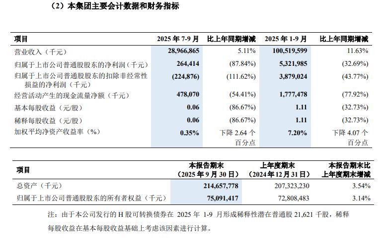 中兴通讯(000063)10月28日发布2025年三季报,公司第三季度营业收入289.67亿元,同比增长5.11%;净利润2.64亿元,同比下降87.84%。2025年前三季度营业收入1005.2亿元,同比增长11.63%;净利润53.22亿元,同比下降32.69%;基本每股收益1.11元。