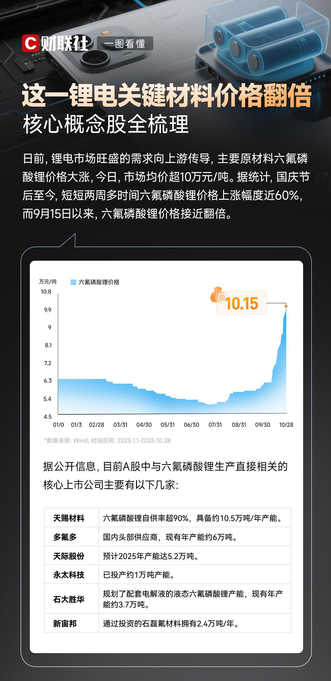 短短两周多时间六氟磷酸锂价格上涨幅度近60%,9月15日以来,六氟磷酸锂价格接近翻倍。