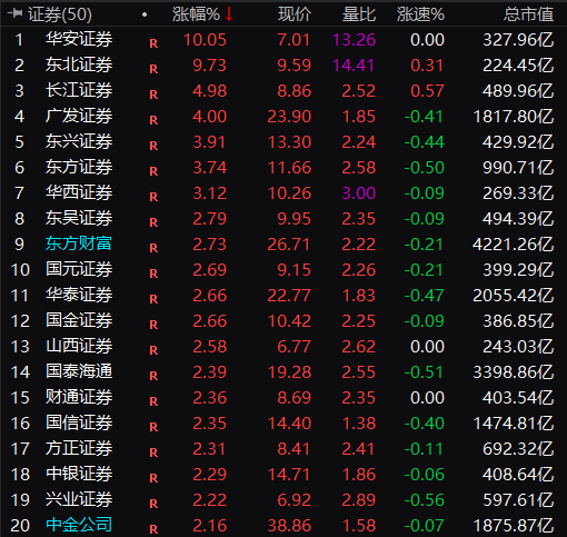 关键时刻,“牛市旗手”崛起。 今日(10月29日)盘中,A股“牛市旗手”券商股集体爆发,华安证券强势涨停,东北证券触及涨停。有分析指出,券商股的表现强劲主要受三季度业绩超预期推动。另外,沪指突破4000点大关带动市场情绪回暖,也是券商股走强的原因之一。 受券商股走强带动,沪指成功站上4000点大关,截至午间收盘,沪指涨0.37%,报4002.83点;创业板指数大涨超1%。对于A股后市,国内券商与外资机构的展望都较为乐观,中国资产价值重估、科技叙事明晰,将持续推动全球资本增配,中国股市有望步入更具持续性的上行趋势。 “牛市旗手”爆发 10月29日盘中,A股券商股集体拉升,华安证券强势涨停,截至午间收盘,东北证券大涨9.7%,长江证券、广发证券涨超4%,东方证券、东兴证券、华西证券涨超3%,东方财富、国元证券、国金证券、华泰证券、山西证券、国泰海通等券商股涨超2%。 ![]() 有分析指出,券商股表现强劲,主要受上市券商三季度业绩超预期推动,截至10月28日,有14家券商披露了前三季度业绩,其中13家数据可比券商的前三季度归母净利润合计约467.26亿元,同比增长46.42%,呈现高景气态势。另外,目前沪指正处于冲击4000点大关的关键阶段,市场情绪也在一定程度上刺激了券商股股价走势。 多家机构指出,目前券商板块仍是“相对低估+业绩同比高增”的稀缺资产。开源证券认为,上市券商三季报有望超预期,投行、衍生品和公募业务将接续改善,头部券商ROE(净资产收益率)具备扩张潜力。 西部证券同样建议关注券商板块,指出在经济定调积极的背景下,资本市场上升趋势明朗,券商板块业绩表现优异。 华泰证券认为,当前资本市场战略地位提升,各部委及监管部门形成政策合力,在引入中长期资金、活跃市场、重视投资者保护中实现着重大变化。同时,低利率时代下的资产配置逻辑重塑,权益市场收益率提升、波动率下降,机构与居民资金加速迁移,也是资本市场底层逻辑转变的重要表现,进而推动券商板块战略配置机会的出现。 对于券商股前景,卖方研究机构仍普遍持乐观态度,券商板块有望在业绩支撑、政策利好及市场活跃度提升的多重因素推动下,延续估值修复行情。另外,公募基金等机构的补配逻辑依然清晰。投资者可关注零售业务优势突出、机构业务强劲及财富管理领域领先的头部券商。