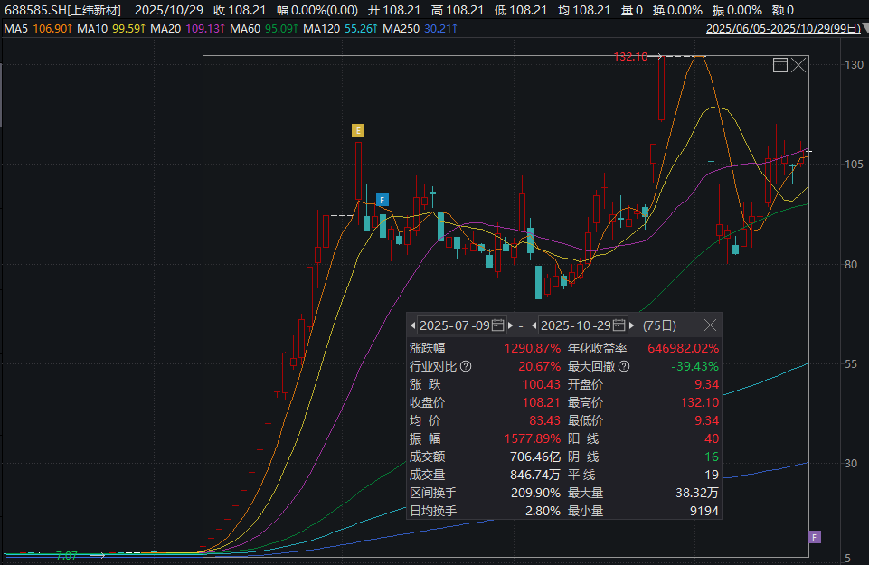 公开资料显示,智元创新(上海)科技有限公司(以下简称智元机器人)致力以AI+机器人融合创新,打造全球领先的通用具身机器人产品及应用生态。公司成立于2023年2月,由全球著名企业核心高管、人工智能领域顶尖科学家等资深产业人士共同创立。 依托行业领先的“一体三智”架构,智元以机器人本体为基,融合作业、交互、运动智能,推出了远征、精灵、灵犀三大机器人家族以及业界首个通用具身基座模型“智元启元大模型”,是业内唯一实现全产品系列、全场景布局的机器人企业。2025年1月,智元机器人第1000台通用具身机器人正式量产下线,刷新行业纪录。 自上述要约收购事项公布后,上纬新材股价开启暴涨模式,成为2025年首只“10倍股”。7月9日以来,上纬新材股价已经累计大涨1290%。 ![]() 截至10月28日收盘,上纬新材股价报108.21元/股,总市值达436亿元。 (文章来源:中国基金报) |