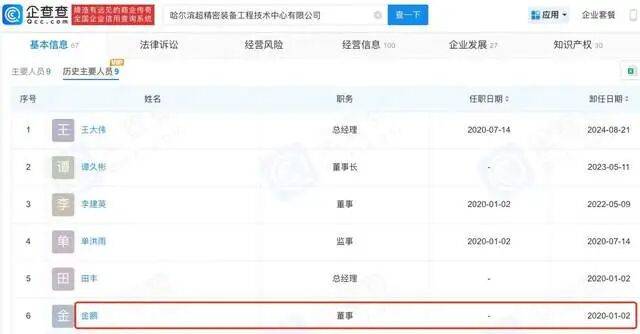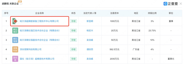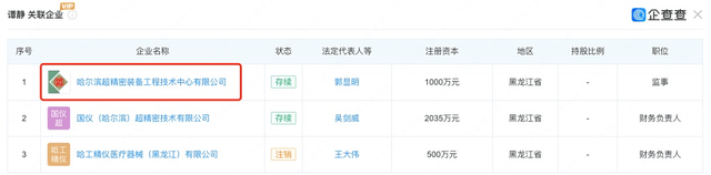 (图片截自企查查) 而“金鹏”这一名字还在其他地方也有露面。在介绍相关内容之前,我们先将目光投向强一股份与哈工大的互动往来。 前文曾提及强一股份现有核心技术人员于海超、赵梁玉、王艾琳。招股书披露,三人均毕业于哈工大,不过强一股份与哈工大的联系不止于此:其独董吴剑威在哈工大仪器科学与工程学院任教授;另外,截至2025年6月,强一股份对哈工大还有预付款80.00万元,采购内容为技术开发服务。 再来看独董吴剑威的兼职情况。据招股书介绍,吴剑威在外控制国仪(哈尔滨)超精密技术有限公司(下称:国仪精密),并在该公司担任总经理一职。 企查查显示,国仪精密的受益所有人为谭久彬,其通过股权链持有国仪精密50.1573%的股份;国仪精密的主要人员包括胡鹏程、谭静等人。胡、谭二人的关联企业都包含哈尔滨超精密装备工程技术中心有限公司(下称:哈超精密),哈超精密的实控人也是“谭久彬”,持股份额为47.5%;而“金鹏”的名字也再次出现在哈超精密的股东名单中,持股份额为3%。“金鹏”此前还曾在哈超精密任董事,后于2020年卸任。