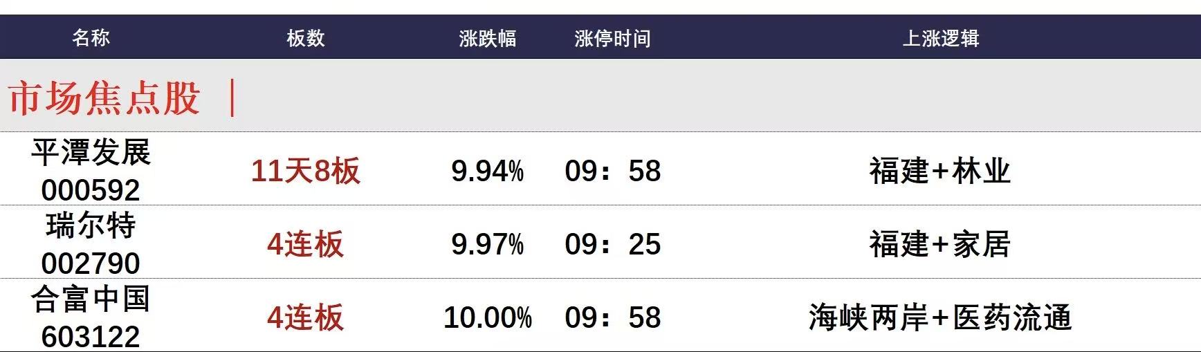 今日午盘全市场共45股涨停,连板股总数7只,34股封板未遂,封板率为57%(不含ST股、退市股)。焦点股方面,福建本地股反复活跃,平潭发展11天8板、瑞尔特4连板。此外,海峡两岸概念股合富中国也走出4连板。