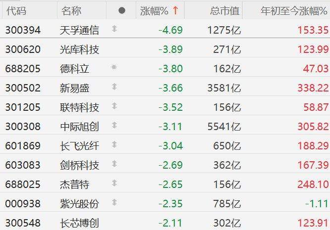 格隆汇10月31日|CPO概念连续第二日集体回调,其中,天孚通信跌超4%,光库科技、德科立、新易盛(300502)、联特科技、中际旭创(300308)、长飞光纤(601869)跌超3%。