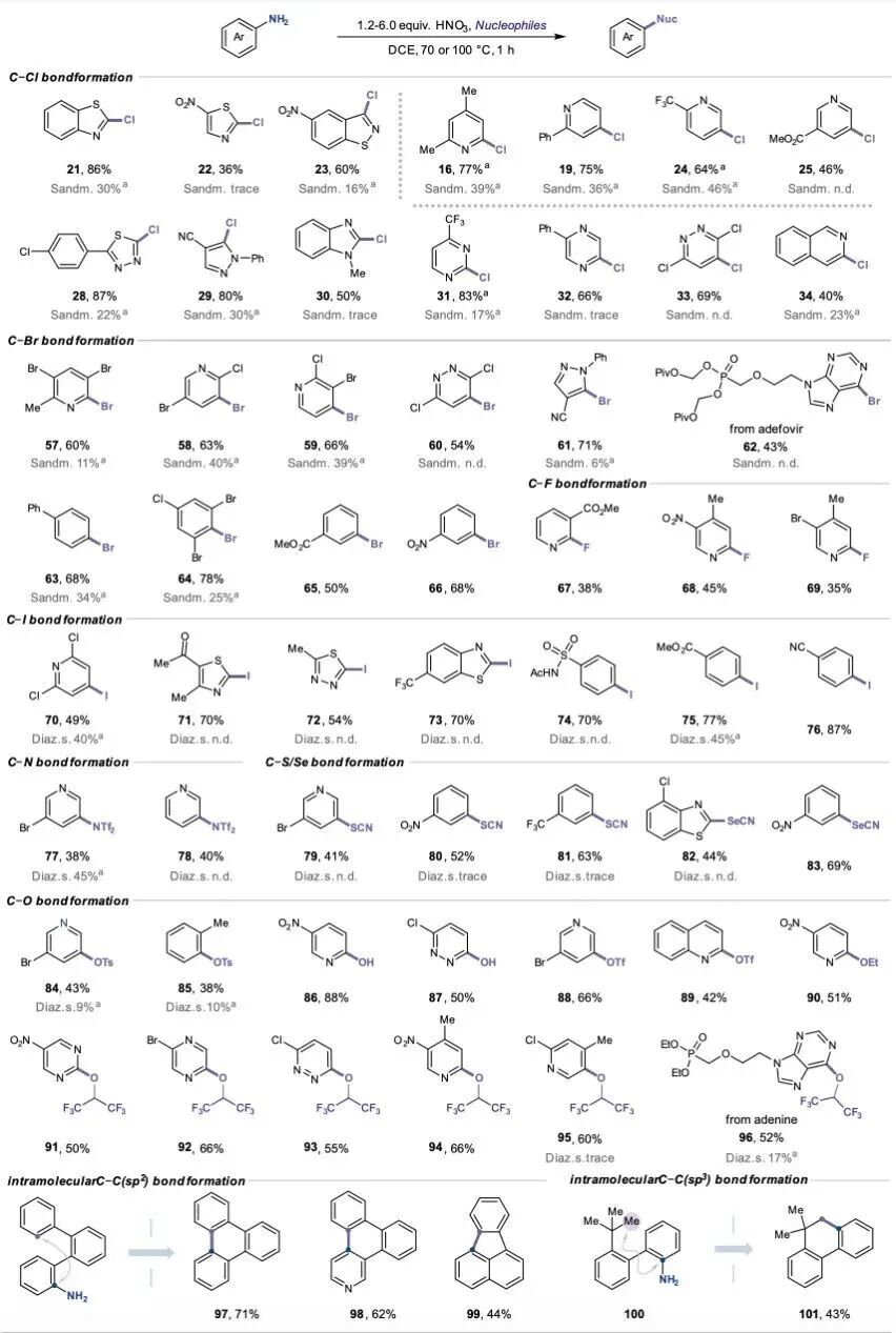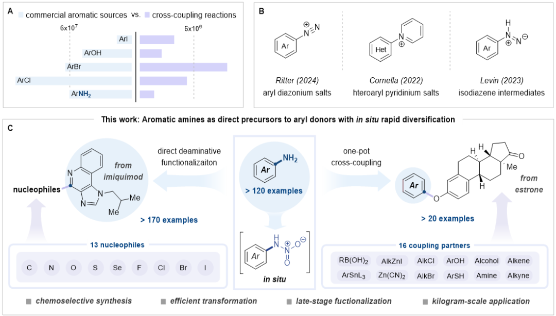 登上Nature!国科大团队破解百年应用难题! 在丁冬财经看资讯行情,选丁冬财经证券一站式开户交易>> 北京时间10月28日,国际权威期刊Nature发表了国科大杭州高等研究院(以下简称“杭高院”)化学与材料科学学院(以下简称“化材学院”)研究员张夏衡团队最新成果——“Direct deaminative functionalization with N-nitroamines”。该成果受到Nature四位主审稿人的高度评价,作为审稿人之一的国际制药巨头辉瑞公司高级研发总监Scott Bagley给予评价:“true tour de force”(法语:真正的杰作)。 ![]() 该团队刊登成果突破性提出了一种借助N-硝胺实现直接脱氨官能团化的全新方法,能够高效地将惰性芳香族碳-氮键直接转化为多种重要化学键(包括碳-卤素键、碳-氧键、碳-氮键及碳-碳键等)。该方案仅需使用实验室中常见普通的试剂,即能高效实现目标产物公斤级的规模化合成,颠覆了工业领域140年来沿用的传统工艺,为传统上广泛使用却因易爆性和高风险而受限的芳基重氮化学提供了一种安全、经济的新方案,有望在制药、材料制造等多个重要领域获得广泛应用。 芳香胺作为生物活性分子里极为常见的官能团之一,广泛存在于药物、天然产物以及农药等多种化合物结构之中。尽管其在分子构建中扮演着重要的结构基石角色,然而将其用作合成砌块的研究进展却相对滞后,尚未得到充分开发。在过去的一个多世纪里,工业领域通常先将芳香胺转化为名为“重氮盐”的中间体,进而利用重氮化合物的高反应活性开展后续转化。该分步策略存在诸多弊端,如重氮盐稳定性差、具有爆炸危险性,基于芳基重氮盐的工艺还面临化学计量级铜消耗大、底物兼容性受限等问题。 ![]() 芳香胺的直接脱氨官能团化反应 张夏衡团队面向绿色药物合成方法和工艺开发、活性分子精准修饰等生物医药前沿领域,在国际权威期刊Nature、Nature Chemistry、Nature Communications、Science Advances等发表多篇重要学术论文,为活性分子的绿色、可持续高效合成和精准修饰提供了有力支撑。为攻克这些难题,张夏衡团队历经三年时间,一直致力于寻找芳胺直接活化路径,最终,成功运用实验室常见且廉价的化学试剂开发出全新的直接脱氨官能团化技术。 该研究利用芳香胺在硝酸介导下原位形成N-硝胺中间体,随后通过脱除一氧化二氮(NO),实现芳香CN键向多种CX键(包括CBr, CCl, CI, CF, CN, CS, CSe与CO)以及CC键的高效直接转化。与经典的Sandmeyer反应条件相比,新方法在药物合成中常用的多氮杂环体系里展现出显著优势;与其他脱氨官能化方法相比,此策略的核心优势在于仅凭实验室极易获取的简单试剂,就实现了出色的通用性:几乎适用于所有类型的药用杂芳胺及电性、结构各异的苯胺衍生物,不受氨基位置限制,并且能够以简易操作实现公斤级的规模化生产。 此外,为进一步提高操作便捷性,该研究还开发了一锅法脱氨交叉偶联策略。只需在脱氨反应中间体中直接加入相应的偶联试剂,即可在同一反应体系中完成多种交叉偶联反应,包括Negishi偶联、还原交叉偶联、Ullmann-Ma反应、Buchwald-Hartwig反应、金属光氧化还原催化、Hirao反应及磺酰化反应等。这为从易得原料快速构建复杂分子开辟了新途径,对药物化学领域的研发工作具有重要推动作用。 ![]() 脱氨官能团化的底物适用范围 国科大杭高院化材学院博士后屠广亮、研究生肖可、副研究员陈小平和国科大研究生许浩然(培养单位:中国科学院上海有机化学研究所)为论文共同第一作者。该研究项目实验部分由张夏衡团队完成,机理计算部分由国科大杭高院/中国科学院上海有机化学研究所研究员薛小松团队完成。张夏衡和薛小松为该论文通讯作者,国科大杭高院为该论文的第一署名和通讯单位。此项科研工作得到了国家自然科学基金、浙江省自然科学基金、杭州市和杭高院研究项目等经费的支持。 想炒股,先开户!选丁冬财经证券,行情交易一个APP搞定>> (文章来源:澎湃新闻) |