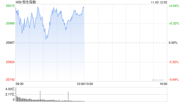 11月3日消息,港股三大指数涨跌不一。截至午间收盘,恒生指数涨0.58%,报26057.13点,恒生科技指数跌0.24%,国企指数涨0.68%。盘面上,科网股涨多跌少,小米涨超3%,网易涨超1%,阿里巴巴跌超1%;煤炭股走强,飞尚无烟煤涨超112%;石油股普涨,中海油涨超3%;内银股活跃,建设银行(601939)涨超3%;黄金股走弱,紫金矿业(601899)跌超3%;明略科技上市首日涨超102%。