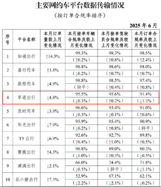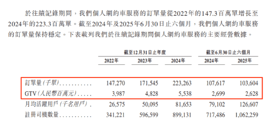 《次世代车研所》栏目看到,2025年上半年,享道出行的个人网约车服务订单从2024年上半年的1.08亿下降至1.04亿单;GTV也从26.99亿元下降至26.28亿元。 从利润方面来看,享道出行处于连年亏损状态。2022年至2025年上半年,享道出行分别净亏损7.81亿元、6.04亿元、4.07亿元、1.15亿元,三年半时间累计亏损高达19.07亿元。 值得注意的是,享道出行接下来的盈利前景也不容乐观。其在招股书中表示,随着公司持续扩展业务经营以及进行研发投入及采购Robotaxi定制车,公司的销售成本及经营开支可能将进一步增加。此外,由于成为上市公司,公司预期会产生庞大的成本及开支。倘公司无法创造足够的收益或有效管理成本及开支,公司未来可能会持续产生重大亏损,净亏损可能会比往年增加。 平台“依赖症”严重,订单合规率下降 招股书显示,根据弗若斯特沙利文的资料,2024年,享道出行以交易总额(GTV)计,在国内网约车平台中排名第五。截至2025年6月30日,享道出行的网约车服务已覆盖全国85个城市。 尴尬的是,享道出行第五的排名还是在严重依赖聚合平台导流的情况下取得的,其独立App和小程序的订单“少得可怜”。目前,享道出行与包括高德打车、滴滴、百度地图、腾讯出行和美团在内的聚合平台合作接收来自个人用户的订单。 数据显示,2022年至2025年上半年,享道出行的个人网约车订单量分别为1.47亿单、1.72亿单、2.23亿单、1.04亿单;而来自聚合平台的订单分别为1.35亿单、1.59亿单、2.17亿单、1.02亿单,占比分别达91.84%、92.44%、97.31%、98.08%。 由此可见,享道出行对聚合平台的流量和订单依赖程度越来越高,这种依赖也存在风险。招股书披露,享道出行与聚合平台的协议期限通常为期一年,可通过双方协议续期。倘到期后未续期,该等协议将会终止。 当然,获取聚合平台的订单也是有代价的。《次世代车研所》栏目看到,2022年―2025年上半年,聚合平台向享道出行收取的佣金分别为2.73亿元、3.29亿元、4.42亿元、2.32亿元(2024年上半年为1.89亿元),处于逐年增加的态势。2022年―2025年上半年,享道出行的销售开支一直处于大幅增长的态势,而背后主要是由于聚合平台收取的佣金增加。