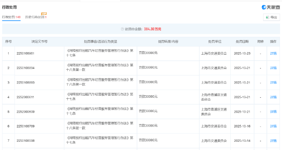 另外,《次世代车研所》栏目从交通运输部公布的数据看到,今年上半年,享道出行在一些月份的订单合规率也在下降。今年5月,享道出行的订单量环比下降6.4%,订单合规率也下降了1.9%;今年6月,享道出行的订单量环比下降4.8%,订单合规率下降1.3%。 值得注意的是,截至2025年6月30日,享道出行平台上的部分车辆及司机尚未取得必要的运输证或网络预约出租汽车驾驶员证,享道出行可能会面临行政处罚,包括罚款、整改令以及暂停或终止营运的颁令,其中任何一项均可能扰乱业务经营,并对业务、财务状况及经营业绩造成重大不利影响。