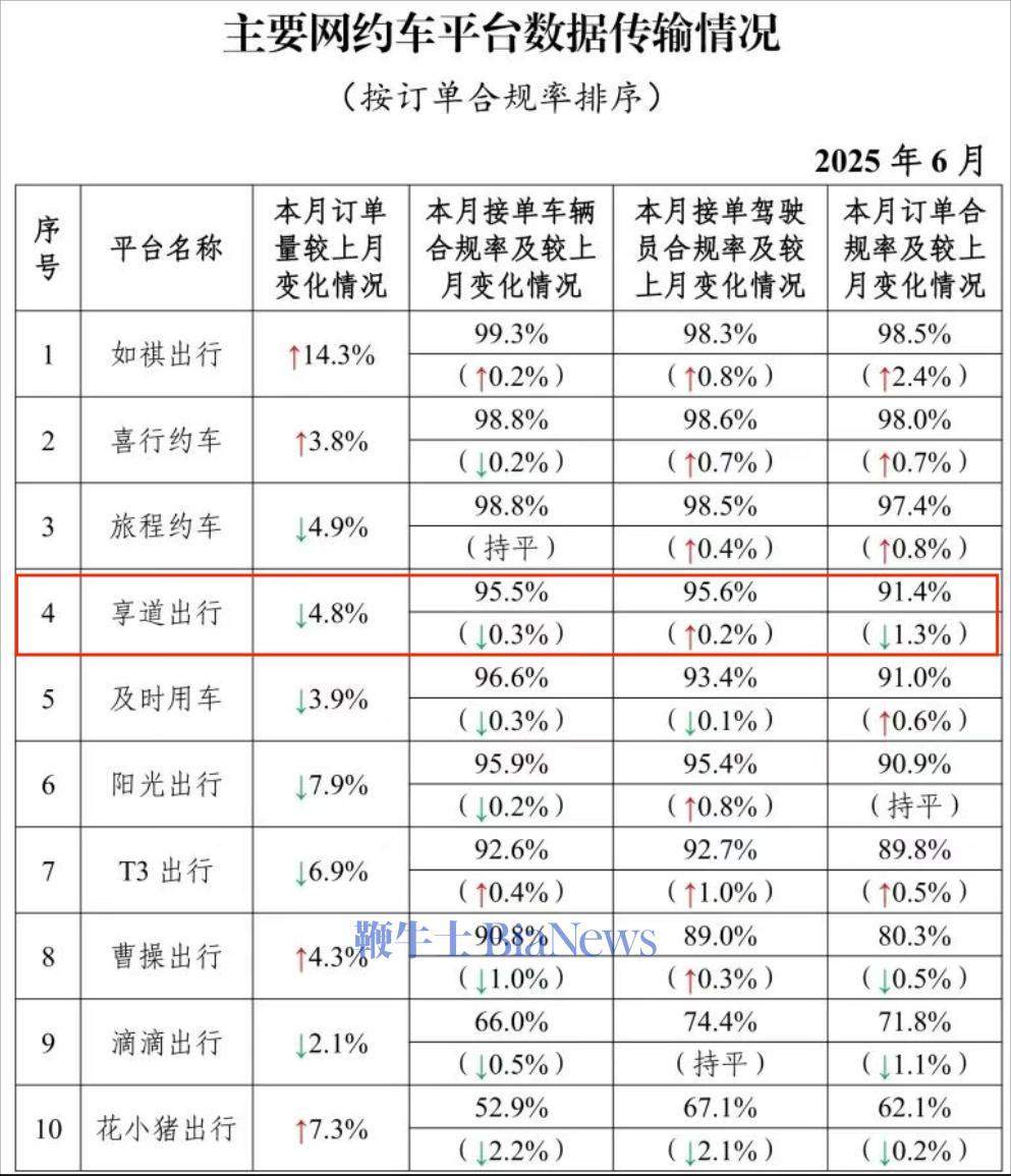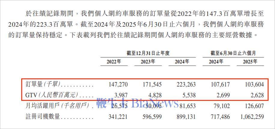 《次世代车研所》栏目看到,2025年上半年,享道出行的个人网约车服务订单从2024年上半年的1.08亿下降至1.04亿单;GTV也从26.99亿元下降至26.28亿元。 从利润方面来看,享道出行处于连年亏损状态。2022年至2025年上半年,享道出行分别净亏损7.81亿元、6.04亿元、4.07亿元、1.15亿元,三年半时间累计亏损高达19.07亿元。 值得注意的是,享道出行接下来的盈利前景也不容乐观。其在招股书中表示,随着公司持续扩展业务经营以及进行研发投入及采购Robotaxi定制车,公司的销售成本及经营开支可能将进一步增加。此外,由于成为上市公司,公司预期会产生庞大的成本及开支。倘公司无法创造足够的收益或有效管理成本及开支,公司未来可能会持续产生重大亏损,净亏损可能会比往年增加。 平台“依赖症”严重,订单合规率下降 招股书显示,根据弗若斯特沙利文的资料,2024年,享道出行以交易总额(GTV)计,在国内网约车平台中排名第五。截至2025年6月30日,享道出行的网约车服务已覆盖全国85个城市。 尴尬的是,享道出行第五的排名还是在严重依赖聚合平台导流的情况下取得的,其独立App和小程序的订单“少得可怜”。目前,享道出行与包括高德打车、滴滴、百度地图、腾讯出行和美团在内的聚合平台合作接收来自个人用户的订单。 数据显示,2022年至2025年上半年,享道出行的个人网约车订单量分别为1.47亿单、1.72亿单、2.23亿单、1.04亿单;而来自聚合平台的订单分别为1.35亿单、1.59亿单、2.17亿单、1.02亿单,占比分别达91.84%、92.44%、97.31%、98.08%。 由此可见,享道出行对聚合平台的流量和订单依赖程度越来越高,这种依赖也存在风险。招股书披露,享道出行与聚合平台的协议期限通常为期一年,可通过双方协议续期。倘到期后未续期,该等协议将会终止。 当然,获取聚合平台的订单也是有代价的。《次世代车研所》栏目看到,2022年―2025年上半年,聚合平台向享道出行收取的佣金分别为2.73亿元、3.29亿元、4.42亿元、2.32亿元(2024年上半年为1.89亿元),处于逐年增加的态势。2022年―2025年上半年,享道出行的销售开支一直处于大幅增长的态势,而背后主要是由于聚合平台收取的佣金增加。