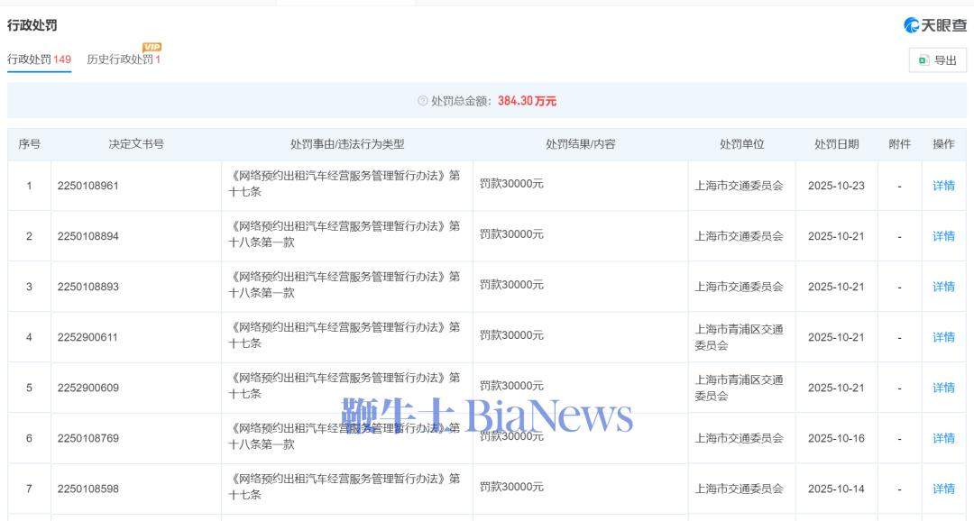 另外,《次世代车研所》栏目从交通运输部公布的数据看到,今年上半年,享道出行在一些月份的订单合规率也在下降。今年5月,享道出行的订单量环比下降6.4%,订单合规率也下降了1.9%;今年6月,享道出行的订单量环比下降4.8%,订单合规率下降1.3%。 值得注意的是,截至2025年6月30日,享道出行平台上的部分车辆及司机尚未取得必要的运输证或网络预约出租汽车驾驶员证,享道出行可能会面临行政处罚,包括罚款、整改令以及暂停或终止营运的颁令,其中任何一项均可能扰乱业务经营,并对业务、财务状况及经营业绩造成重大不利影响。