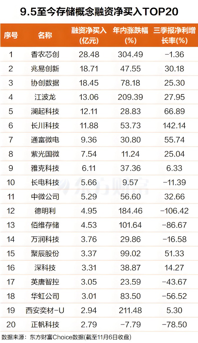 存储涨价超预期!年内最高涨超3倍 杠杆资金抢筹这些票(表格)