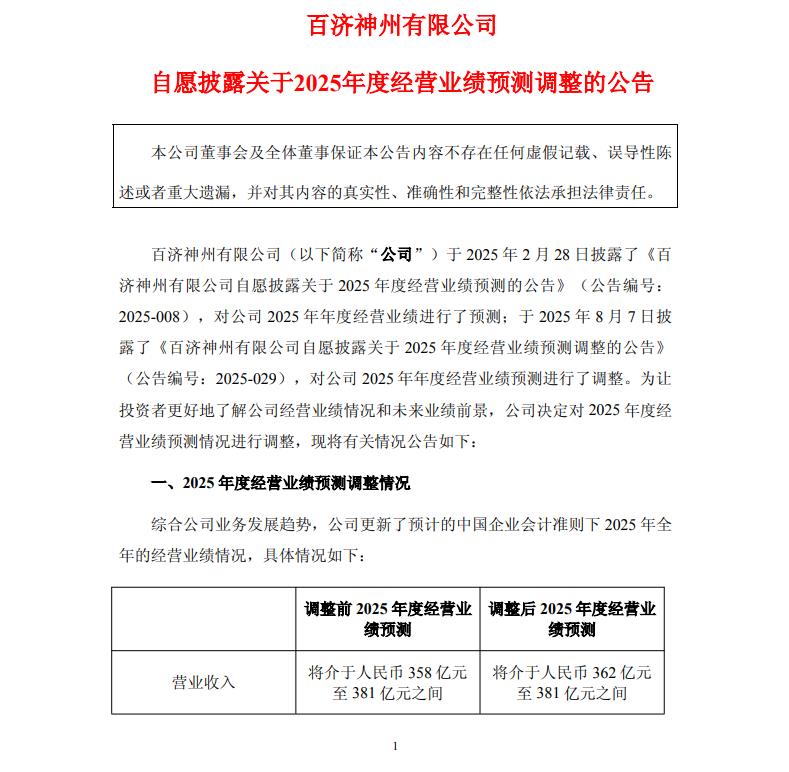 百济神州:调整2025年营业收入预测为362亿元至381亿元