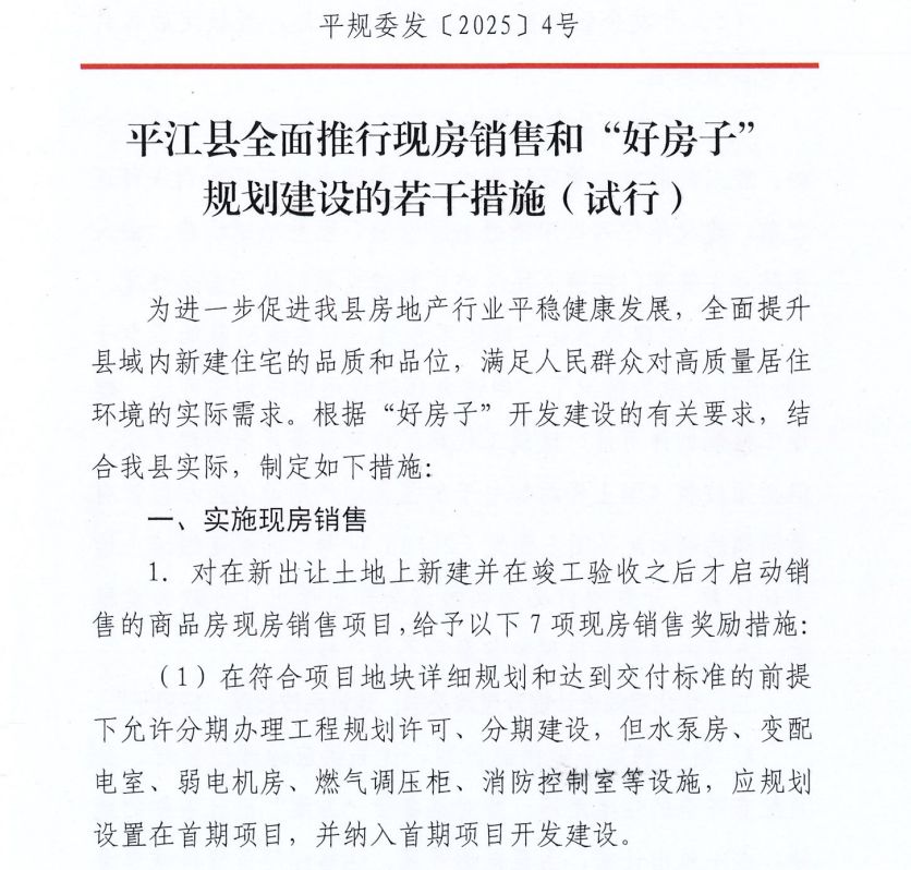 又一地全面推行现房销售 什么信号?专家:现房销售的市场条件已逐渐成熟 专业金融数据,下一代智能终端 “一手交钱,一手交房”的时代要来了。 据湖南省人民政府官网消息,11月3日,岳阳市平江县出台《全面推行现房销售和“好房子”规划建设的若干措施(试行)》,成为湖南省首个全面推行现房销售的县城。 不止岳阳,今年9月,湖南省邵阳市住建局等9部门联合发布《关于促进邵阳市房地产高质量发展的若干措施》,其中亦明确,推进商品住房销售制度改革,新出让的土地,未明确预售条件的,将全面实行现房出售,从源头上减少交易纠纷。 克而瑞统计数据显示,自2022年末以来,全国已有超过30个省(市)开展现房销售试点或出台配套政策。 11月6日,克而瑞研究中心副总经理杨科伟接受《每日经济新闻》记者书面采访时表示,房地产行业经历深度调整,先是三四线城市,再到二线城市,越来越多项目的销售速度赶不上施工进度,期房销售变现房销售正悄然成为主流趋势。现房销售的市场条件已逐渐成熟,将成为推动房地产行业高质量发展的重要举措。 改善市场供需结构 每经记者从平江县国土空间规划委员会发布的文件获悉,该县对在新出让土地上新建并在竣工验收之后才启动销售的商品房,实施现房销售。同时,给予7项现房销售奖励措施,包括政府行政事业性收费由征收单位按照统一收费标准的50%收取,对土地评估的楼面地价按计容计价建筑面积每平方米150元予以优惠等。 ![]() 平江县位于湖南省东北部,毗邻长沙市下辖的长沙县。根据平江县2024年国民经济和社会发展统计公报,2024年,平江县完成房地产开发投资18.31亿元,同比增长1.4%;商品房销售面积34.64万平方米,同比增长14.4%;商品房销售额16.17亿元,同比增长4.5%。截至2024年末,商品房待售面积4.88万平方米,比上年同期增长41.9%。 “对于库存量大的地区,实施现房销售有助于控制供应规模,直接改善市场供需结构,加快库存去化,有利于房地产发展新模式的构建。”中指研究院相关负责人向每经记者表示。 10月28日发布的“十五五”规划建议明确了推动房地产高质量发展的五大方向。随后,住建部部长倪虹撰文指出,在商品房销售上,推进现房销售制,实现所见即所得,从根本上防范交付风险;继续实行预售的,规范预售资金监管,切实维护购房人合法权益。 上述负责人认为,现房销售制的推进并非“一刀切”,而是按“新老有别”原则。 “‘十五五’时期,现房销售或将逐渐推进,预计更多库存量大的城市或区域将率先推进现房销售。”该负责人表示,对于部分库存量较小的地区来说,现房销售后新增供应将减少,或影响市场供需平衡,“这些区域更需要地方政府精准把控推进节奏和力度,完善适用于现房销售模式的房地产融资制度等”。 加速行业结构优化 近年来,有关商品房预售制改革的呼声此起彼伏。 去年全国两会期间,全国人大代表、浩天律师事务所合伙人会议主席朱征夫就准备了一份《关于取消商品房预售制度的建议》。 在他看来,可以不用“一刀切”式取消商品房预售制度,但要适度推进。特别是(如果)地方政府对于预售资金监管不能做到位,那么不如取消预售制度,实行现房销售。 从公开信息看,早期的现房销售探索多为特定地块或尝试性举措,最早可追溯至2014年上海市黄浦区的一宗地块,首次明确要求“建成房屋须以全装修现房销售”。 海南则是全国首个在省级层面推行现房销售政策的省份,自2020年起,海南新出让土地建设的商品住房全面实行现房销售制度。 据杨科伟介绍,海南采取的是一种比较彻底的模式,对新出让土地建设的商品住房全部实行现房销售。政策实施效果是,有效提升购房者满意度,新房投诉量下降67%;头部房企市场份额占比超过75%。行业集中度显著提升,说明现房销售加速了行业结构优化。 全新妙想投研助理,立即体验 (文章来源:每日经济新闻) |