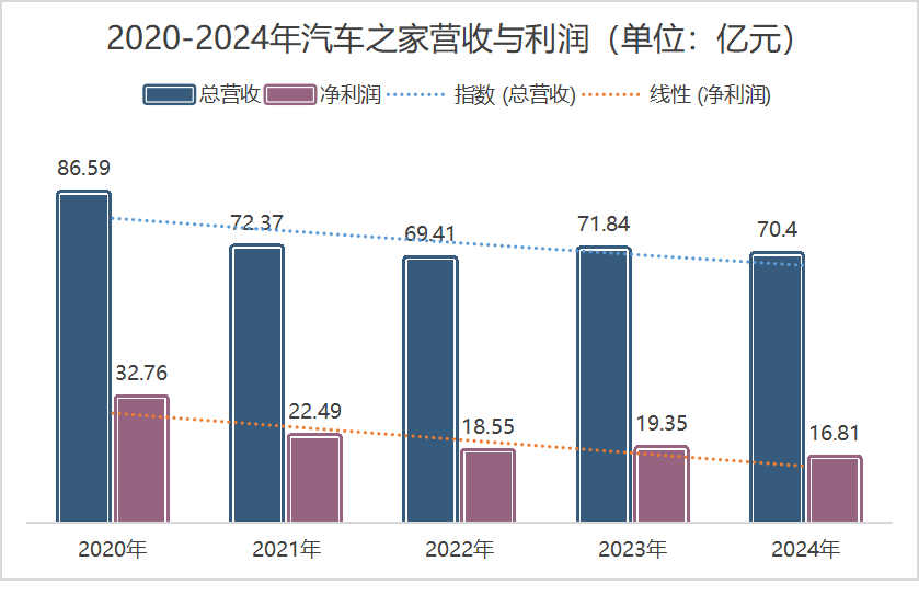 数据来源:汽车之家财报 时代周报记者制图 财报显示,2020年之后,汽车之家的营收与利润双双下滑。尽管在2023年曾出现回暖,但这一态势并未延续至2024年。汽车之家在2023年年报中提到,“我们可能无法维持当前的增长水平或确保我们的扩张或新业务举措的成功。” 2024年,汽车之家的收入降至70.4亿元,净利润也缩减至16.81亿元。 业绩承压背后,是汽车之家在媒体及线索业务、二手车交易业务以及汽车金融业务等核心业务正遭遇激烈的市场竞争。 公司在2024年年报中指出,公司业务面临来自汽车垂直平台、大型互联网门户及移动内容应用的多方面竞争。此外,随着业务边界的扩展,在二手车交易领域需应对瓜子、优信等平台的挑战,在汽车金融领域则与易鑫、搜车等专业机构存在竞争。 面对竞争压力,汽车之家从多年前便开始探索新的增长路径。 2019年,公司将业务版图拓展至欧洲,在英国和德国设立子公司;2022年又进军线下零售领域,打造“汽车之家空间站”。 只不过,新业务的探索尚未给汽车之家带来显著的收益。在2024年的年报中,汽车之家提到,“截至2024年12月31日,该等子公司(在英国和德国建立了两间子公司)并未产生大量收入。截至本年报日期,我们已解散英国子公司及德国子公司。” 近期,汽车之家再度推出新举措。11月3日,汽车之家宣布正式推出全新电商平台“汽车之家商城”。在发布会现场,包括北汽极狐、一汽大众、阿维塔、岚图汽车、奇瑞汽车、蔚来汽车、零跑汽车等在内的15家主流汽车品牌正式入驻汽车之家商城。 汽车之家总裁王秋凤女士表示:“汽车之家将持续通过创新的商业模式,与全产业链伙伴共同推动行业革新,树立新一代汽车电商服务的标杆,为消费者带来更加高效便捷的一站式服务体验。” 汽车之家商城的上线,代表着汽车之家从“内容平台”正式升级为“内容生态+工具服务+交易平台”一站式汽车生活服务提供商,实现“看车-买车-用车-换车”的生态闭环。 刘斥在三季报中提到,“9月,汽车之家商城的试运行成为重要里程碑。这不仅彰显了我们O2O战略的重大进展,更进一步完善了我们的新零售业务模式。展望未来,我们将持续探索汽车之家与卡泰驰之间的协同效应,推动公司迈向新的发展阶段。” (责任编辑:王治强 HF013)