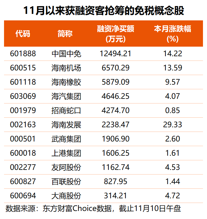 11月10日,三大股指集体高开,随后沪指横盘窄幅震荡,创业板指持续下行。截至午间收盘,沪指微跌0.03%,深成指跌0.59%,创业板指大跌2.13%。两市半日成交1.44万亿元,较上一交易日同期明显放量(1875亿元)。 板块方面,化工方向延续强势,天际股份、鲁西化工、安纳达等多股涨停,消费板块早盘普涨,免税、食品饮料、旅游等涨幅居前;算力硬件、电网设备等板块早盘表现疲弱。 ![]() 今日早盘,大消费板块集体走强,欢乐家20cm涨停,巴比食品、庄园牧场、会稽山等多股封板。 消息面上,据国家统计局数据,10月份,扩内需等政策措施持续显效,叠加国庆、中秋长假带动,居民消费价格指数(CPI)环比上涨0.2%,同比上涨0.2%,扣除食品和能源价格的核心CPI同比上涨1.2%,涨幅连续第6个月扩大。 除了基本面的改善,财政部日前的重磅发声,也为消费板块进一步增添了信心。 11月7日,财政部发布《2025年上半年中国财政政策执行情况报告》,回顾上半年财政运行情况,并展望下一步财政政策方向。 《报告》明确将重点做好六方面工作,包括用好用足更加积极的财政政策,全力支持稳就业稳外贸,加快培育壮大发展新动能,进一步保障和改善民生,持续用力防范化解重点领域风险,不断提升财政治理效能和水平等。 《报告》还提出,继续实施好提振消费专项行动,对重点领域的个人消费贷款和相关行业经营主体贷款给予财政贴息,激发养老、托育等服务消费潜力。 在大消费细分赛道中,免税概念早盘涨幅居首,龙头股中国中免封涨停,总市值近1800亿元,东百集团亦封涨停,王府井、珠免集团等涨超5%。 消息面上,海南离岛免税新政实施首周,旅游消费市场持续升温。据海口海关统计,11月1日至7日,海口海关共监管海南省离岛免税购物金额5.06亿元,购物人数7.29万人次,同比分别增长34.86%、3.37%。 此外,海南自贸港即将迈入全岛封关运作新阶段,免税板块同样有望受益。 值得注意的是,东方财富Choice数据显示,11月以来,多只免税概念股获得杠杆资金加仓,其中,中国中免月内获融资客抢筹约1.25亿元,海南机场、海南橡胶融资净买额均超5000万元。 财通证券认为,中国中免是国内免税行业龙头,持续深耕运营能力,随着海南离岛免税节假日数据逐步改善,叠加出入境数据恢复较好,公司的离岛免税和口岸免税有望迎来拐点,同时公司积极发力市内免税业务,打造第二增长曲线。 ![]() 展望后市,中信证券表示,近期离岛免税销售数据已呈现同比改善趋势,12月海南全岛封关有助于推动海南旅游零售市场的整体发展,建议积极关注免税板块。 对于整个消费板块,中国银河证券指出,当前消费风格估值处于历史低位,估值修复空间较大。重点关注估值处于历史中低位且业绩分位数表现相对靠前的啤酒、饲料加工、畜牧养殖、白色家电、调味品等。