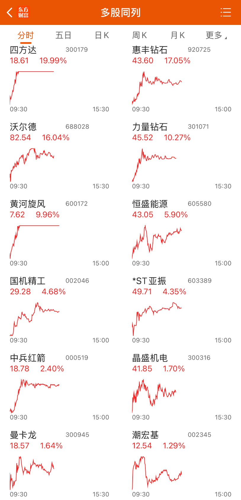 A股三大股指早盘高开低走,截至午间收盘,沪指跌0.38%,深成指跌0.52%,创业板指跌0.74%。市场交投活跃度有所下降,两市半日成交1.26万亿元,较昨日同期缩量约1846亿元。 板块方面,培育钻石、光伏、燃气、锂电池等板块领涨,煤炭、保险、海南、券商等板块早盘走弱。 ![]() 今日早盘,光伏板块逆势走高,中来股份20cm涨停,中利集团、协鑫集成、金辰股份等多股涨停,阿特斯、亿晶光电等涨幅居前。 消息面上,11月10日,国家发改委、国家能源局发布关于促进新能源消纳和调控的指导意见,意见提到,大力推进技术先进、安全高效的新型储能建设;到2030年,满足全国每年新增2亿千瓦以上新能源合理消纳需求,助力实现碳达峰目标。 另据上证报报道,接近多晶硅收储事项的人士透露,各方合计出资额可能在200亿元至300亿元,具体尚不确定。而产能收储所需总资金将高于此,具体金额目前亦不能确定。 此外,近日,中国科学院半导体研究所游经碧研究员团队在钙钛矿太阳能电池领域取得重要进展,研发出光电转换效率为27.2%的钙钛矿太阳能电池原型器件,并显著提升了其运行稳定性,为钙钛矿太阳能电池的产业化发展奠定了关键基础。相关研究成果在线发表于《科学》杂志。 值得一提的是,这一消息也直接带动了光伏板块中钙钛矿电池概念股的早盘异动。其中,拓日新能封涨停,金科科技、亚玛顿、京山轻机等多股跟涨。 ![]() 延续昨日涨势,培育钻石概念股早盘再度集体走强,四方达20cm涨停,惠丰钻石、沃尔德双双涨超15%,黄河旋风封涨停,力量钻石、恒盛能源、国机精工等跟涨。 消息面上,近日,西安电子科技大学郝跃院士团队引入石墨烯作为中间缓冲层,让氧化镓与多晶金刚石成功“牵手”,大幅提升了电子器件的散热能力和可靠性,由此引发市场对培育钻石在高端芯片制造中替代价值的重估。据预测,随着该技术的推广应用,未来新能源汽车、轨道交通、航天装备、智能电网等领域均有望迎来更高效、更耐用的电子器件,并借此为产业发展注入新动力。 同时,商务部、海关总署日前发布公告称,经批准,自即日起至2026年11月10日,暂停实施于10月9日发布的6项公告,其中一则公告就涉及对超硬材料相关物项实施出口管制的决定。 此外,Carbontech 2025金刚石年会将于12月9日至11日在上海新国际博览中心举行,本届年会以“让更多金刚石应用被看到”为主题,聚焦金刚石在电子功率器件、散热封装、量子传感、精密加工、刀具制造等领域的前沿研究与产业化进展。 ![]() 太平洋证券指出,随着5G通信、人工智能、云计算等技术的爆发式发展,芯片算力呈指数级增长,对散热能力提出更高需求,而金刚石散热在高算力场景中具有显著优势。未来随着金刚石散热方案不断完善,有望重构散热技术全球竞争格局,而我国为世界超硬材料生产大国,其人造金刚石的产量位居全球第一,产业链优势明显,有望充分受益,建议关注产业相关标的。