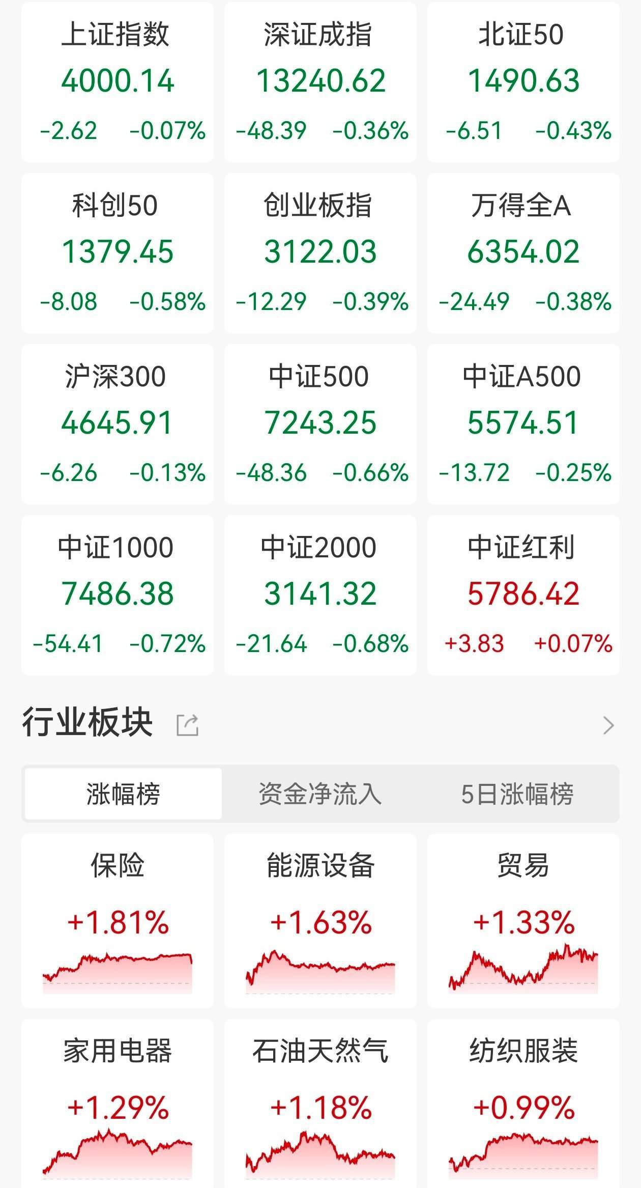 格隆汇11月12日|A股三大指数今日早盘走低,午后收窄跌幅;截至收盘,沪指跌0.07%报4000点,深证成指跌0.36%,创业板指跌0.39%。全市场成交额1.96万亿元,较前一交易日缩量491亿元,逾3500股下跌。