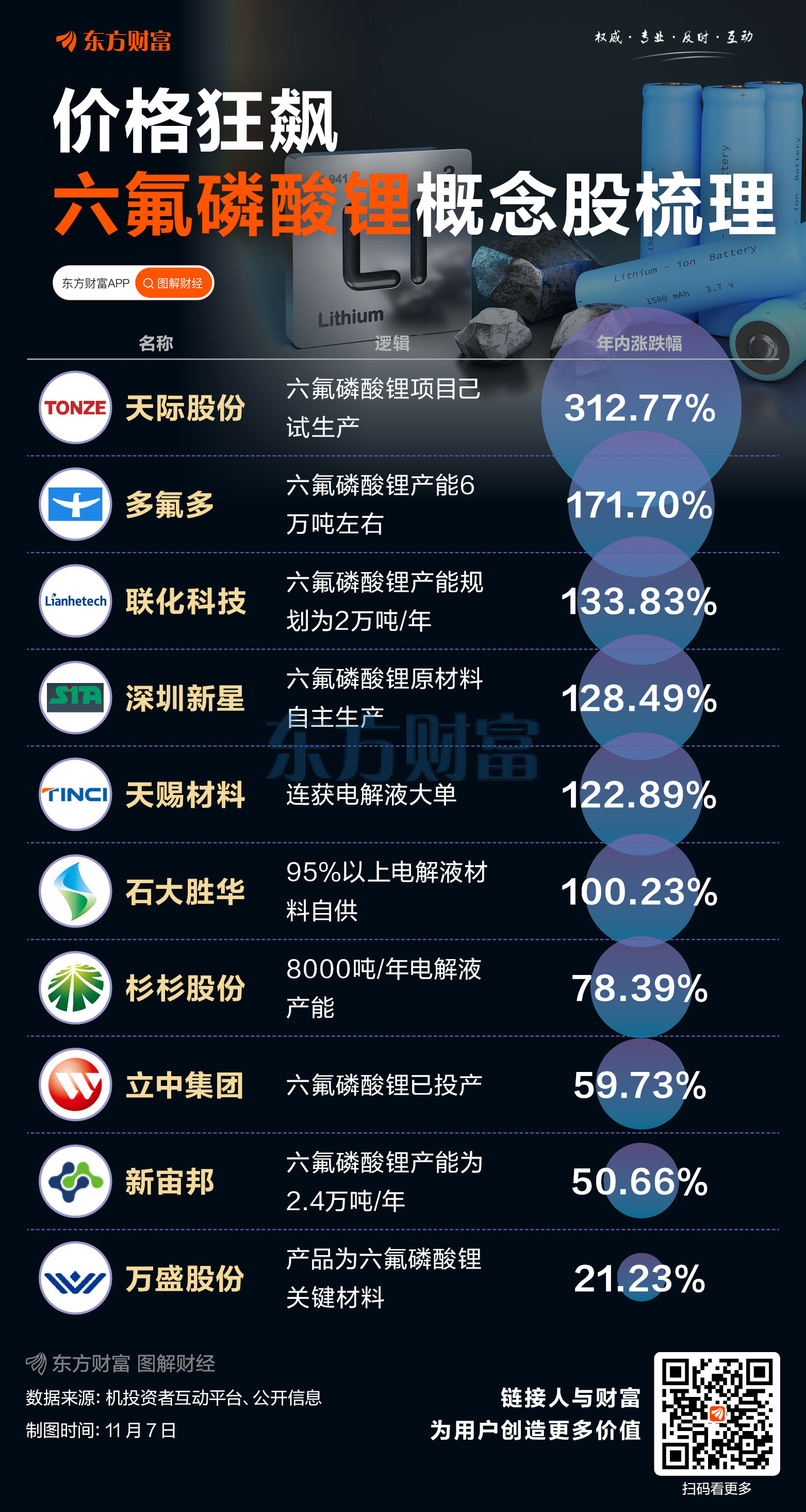 利好持续催化 据工信部最新消息,11月12日至13日,2025世界动力电池大会在四川省宜宾市举办。中国科学技术协会主席万钢,四川省委书记、省人大常委会主任王晓晖,工业和信息化部党组成员、副部长辛国斌出席并致辞。 辛国斌指出,大力发展新能源汽车和动力电池产业,是我国应对全球气候变化挑战、减少温室气体排放的战略举措。近年来,我国动力电池产业实现快速发展,系统能量密度、循环寿命、充电速率等技术指标大幅跃升,涵盖基础材料、电芯制造、系统集成、回收利用等各环节的产业链逐渐完备,动力电池全生命周期碳排放大幅下降,为全球减碳事业作出了巨大贡献。 辛国斌表示,电动化技术正从汽车向工程机械、船舶、航空器、机器人等领域全面渗透,动力电池产业发展前景广阔。工业和信息化部将认真贯彻落实党中央、国务院决策部署,完善支持政策,加强各方协同,持续推动动力电池产业高质量发展。一是强化战略引领,编制“十五五”智能网联新能源汽车、新型电池产业发展规划,明确发展目标和重点任务。二是扩大应用场景,促进动力电池在相关领域扩大应用,支持换电模式创新和车网互动试点,推动新能源汽车与智慧基础设施协同发展。三是健全治理体系,完善动力电池综合利用暂行办法,研究建立动力电池碳管理政策体系,进一步规范产业竞争秩序。四是拓宽合作空间,打造市场化、法治化、国际化一流营商环境,加快规则对接、标准协同,为高质量国际交流合作创造条件。 2025年10月,我国新能源汽车销售171.50万辆,同比增长19.93%,环比增长6.92%,10月月度销量占比51.63%,主要系政策层面持续鼓励,新能源整车性价比总体提升。2025年10月,我国动力电池装机84.1GWh,同比增长42.06%,其中三元材料装机占比19.62%;宁德时代、比亚迪和中创新航装机位居前三。 上游材料也是持续涨价。截至2025年11月11日,电池级碳酸锂价格为8.50万元/吨,较2025年10月初价格上涨15.65%;氢氧化锂价格为7.83万元/吨,较10月初上涨2.29%,预计二者价格短期或震荡向上。电解钴价格40.25万元/吨,较10月初上涨17.69%,短期预计震荡向上;钴酸锂价格38.10万元/吨,较10月上涨39.05%;三元523正极材料价格14.0万元/吨,较10月初上涨15.23%;磷酸铁锂价格3.78万元/吨,较10月初上涨8.46%,短期震荡向上。六氟磷酸锂价格为12.30万元/吨,较10月初上涨105.0%;电解液为2.84万元/吨,较10月初上涨44.90%。 中原证券表示,锂电池和创业板估值分别为28.91倍和43.08倍,结合行业发展前景,维持行业“强于大市”评级。结合国内外行业动态、细分领域价格走势、月度销量及行业发展趋势,行业景气度总体持续向上,短期重点关注上游原材料价格走势、月度销量、国内外相关政策及固态电池相关进展。考虑行业相关政策表述、原材料价格走势、板块业绩情况、目前市场估值水平及行业未来增长预期,短期建议持续关注板块投资机会,同时密切关注指数走势及市场风格。中长期而言,国内外新能源汽车行业发展前景确定,板块值得重点关注。 东财图解·加点干货六氟磷酸锂之后!VC价格大涨 概念股集体走强 ![]() 价格狂飙!一图梳理六氟磷酸锂概念股 ![]() (文章来源:证券时报网) |