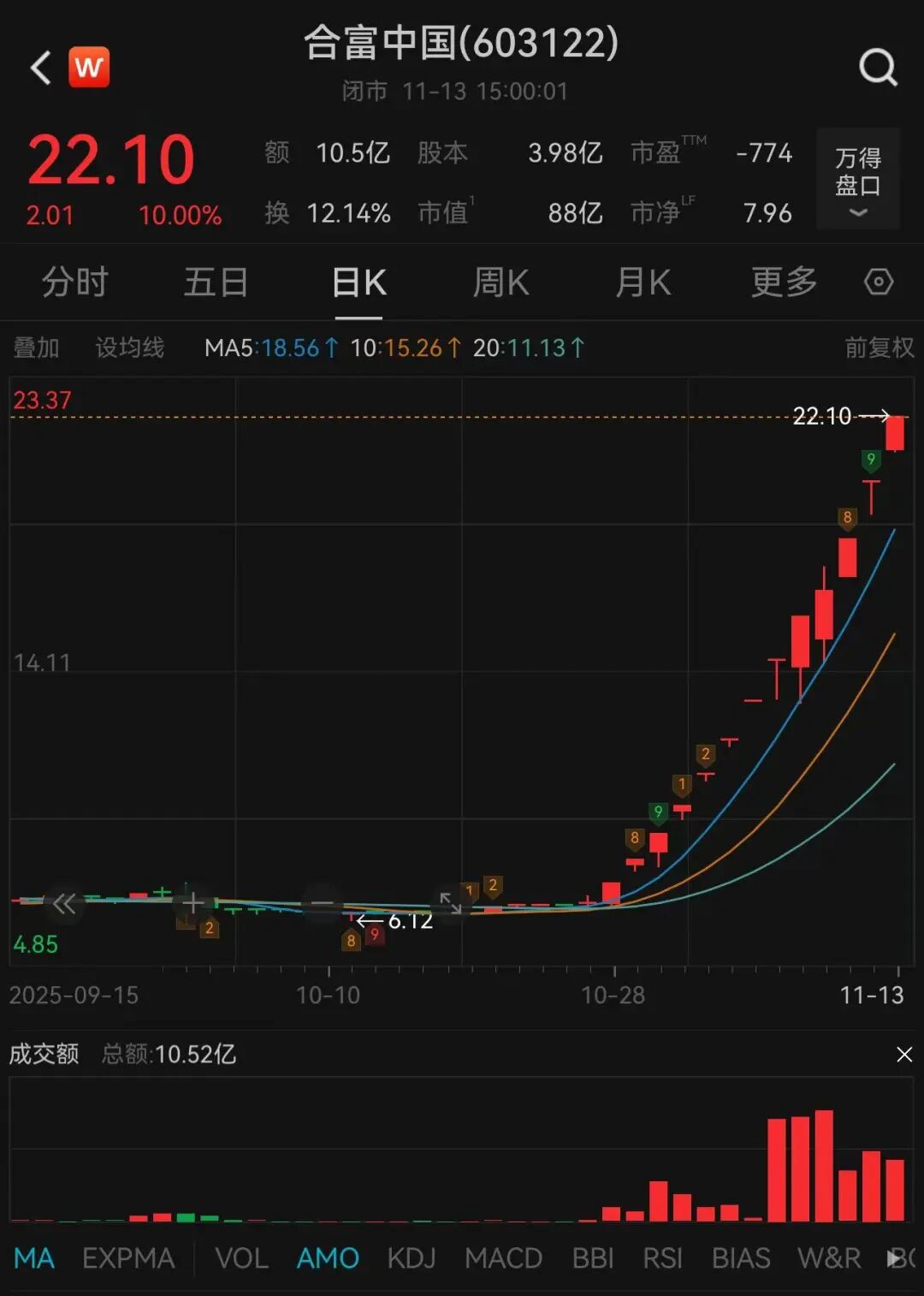 合富中国11月13日晚发布《股票交易风险提示公告》称,公司股价累计涨幅已严重偏离基本面,投资者参与交易可能面临较大风险。如公司股价进一步异常上涨,公司可能申请停牌核查。 Wind数据显示,11月13日,合富中国再次涨停,走出13天12板,最新市值为88亿元。10月以来,公司股价累计涨幅达244.24%。 ![]() 图片来源:Wind 13个交易日大涨230.84% 10月28日至11月13日,合富中国股价连续13个交易日累计涨幅达230.84%,其中12个交易日以涨停价收盘,并5次触及股价异常波动、3次触及严重异常波动情形。 ![]() 图片来源:公司公告 资料显示,合富中国的业务范围包括临床诊疗AI辅助系统、远程医疗推动优质医疗资源的下沉与共享、医院精细化运营管理、两岸医疗专家合作交流、科研成果转化及商业落地、体外诊断试剂及耗材精细化管理服务等。 公司在公告中提示,当前公司股价涨幅已严重偏离基本面,存在市场情绪过热、非理性炒作风险。截至11月13日,公司静态市盈率为319.12倍,而同期所属批发业的行业静态市盈率仅为30.88倍,股价严重偏离同行业上市公司合理估值。公司股票流通换手率亦出现较大波动情形,击鼓传花效应明显。 业绩下滑并出现亏损 与股价接连上涨形成鲜明对比的,是公司下滑的业绩。 合富中国三季报显示,前三季度公司实现营业收入5.49亿元,同比下降22.80%;归属于上市公司股东的净利润亏损1238.62万元,同比下降146.65%。第三季度,公司净利润亏损504.80万元,较上年同期下降225.26%。 公司称,公司产品采购单价下调,订单采购量缩减,导致收入与利润同步下滑。 公司表示,已落地多项费用管控举措,但短期内费用的下降幅度尚未能完全抵消收入端的下滑影响,进而导致公司短期经营业绩面临一定压力,存在业绩波动的风险,目前股价涨幅与公司经营情况严重偏离。 合富中国称,目前生产经营活动正常,内外部经营环境和主营业务未发生重大变化,不存在应披露而未披露的重大信息。公司已连续发布多份股票交易异常波动及风险提示公告,提醒投资者注意业绩波动及估值偏高风险,理性决策,避免投资损失。 (文章来源:中国证券报) |