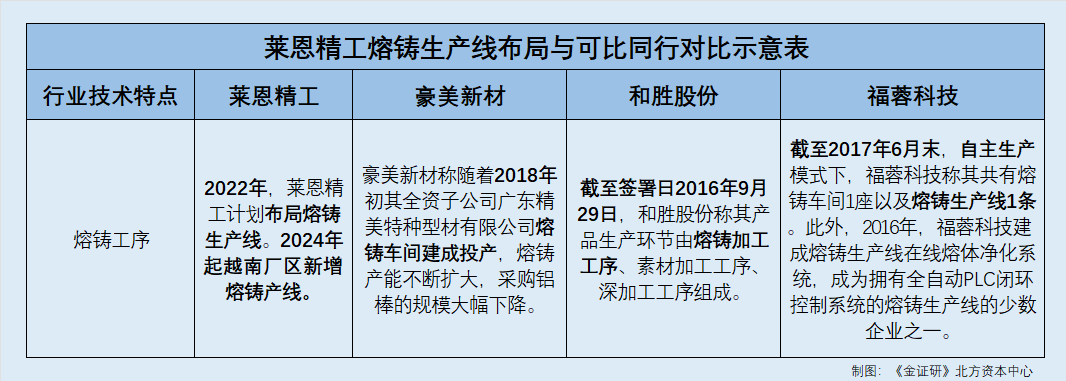 《金证研》北方资本中心 亦戈*DL/作者 廉贞 映蔚/风控 在申报北交所之前,苏州莱恩精工股份有限公司(以下简称“莱恩精工”)曾申报创业板并于2022年7月终止审核。前次申报过程中,深交所认为其通过子公司取得银行贷款的行为属于“转贷性质”,构成在首次申报审计截止日后原则上不能再出现的财务内控不规范情形。基于上述原因,莱恩精工决定撤回前次申报申请。到了此次申报北交所,苏州莱恩精工合金股份有限公司(以下简称“莱恩精工”)表示,报告期内,未新增以无真实交易背景业务合同取得银行贷款的情形。 而莱恩精工前后两次申报过程中,前次申报称其铝型材业务属于有色金属冶炼和压延加工业,而此次申报对此并未披露该行业,且前次申报突击更名为“精工”。且两次申报中,其主营业务收入构成未发生重大变化,其中2019-2024年铝型材业务收入占比徘徊在20%左右。此外,业务布局方面,莱恩精工熔铸产线或落后于部分同行。 业绩方面,莱恩精工前次申报撤材料当年营收增速下滑至-13.84%,此番申报北交所增速回正。此次上市,铝合金部件收入占比不足三成,且毛利率下滑、产能利用率走低,莱恩精工反募资扩产。另外,实控人张秀卓系经济学及金融专业毕业,却“现身”多项专利的发明人名单的情形,同样值得关注。 一、前次申报突击更名为“精工”,主营业务收入构成未发生重大变化背后或选择性披露行业分类 抽丝剥茧方能找到事物真相。前次申报创业板前一个月,莱恩精工突击更名为“精工”,而登高器具领域的竞争对手有五家,行业分类包括“五金”“铝业”“家居”等。此外,2022年,莱恩精工计划引进熔铸生产线,2024年起越南厂区新增熔铸产线。而2019年之前,部分铝合金深加工的主要竞争对手熔铸生产线已投产。 1.1 2022年前次申报撤材料当年营收增速下滑至-13.84%,此番申报北交所增速回正 据深交所签署日为2022年7月8日的《关于终止对莱恩精工首次公开发行股票并在创业板上市审核的决定》,2021年6月29日,深交所受理了莱恩精工首次公开发行股票并在创业板上市的申请文件。2022年7月3日,莱恩精工向深交所提交了撤回在创业板的上市申请。对此,2022年7月8日,深交所决定终止对莱恩精工在创业板的上市审核。 在此背景下,关注莱恩精工的业绩变化。 据莱恩精工前次申报签署于2022年4月11日的招股说明书(以下简称“签署于2022年4月11日的招股书”)及莱恩精工申报北交所签署于2025年6月11日的招股说明书(以下简称“签署于2025年6月11日的招股书”),2020-2024年,莱恩精工的营业收入分别为10.12亿元、11.64亿元、10.03亿元、8.49亿元、11.59亿元,净利润分别为8,307.97万元、8,024.7万元、9,973.6万元、5,637.31万元、9,493.18万元。 根据《金证研》北方资本中心测算,2021-2022年,莱恩精工的营收增速分别为14.97%、-13.84%、-15.36%、36.55%,净利增速分别为-3.41%、24.29%、-43.48%、68.4%。 据2025年半年报,2025年1-6月,莱恩精工的营业收入为4.91亿元,较上年同期增长8.29%,净利润为3,114.94万元,较上年同期增长-5.1%。 即是说,莱恩精工2021年申报创业板当年净利润下滑,次年撤回上市申请,彼时其营收增速下滑为负。此番申报北交所,莱恩精工的营收、净利润在2023年曾负增长,到了2024年均回正。而2025年上半年,莱恩精工的净利润增幅再度告负。 此外,莱恩精工称其行业竞争激烈,且多数企业研发能力弱。 据签署于2025年6月11日的招股书,莱恩精工的主营业务为精密铝合金制品的研发、设计、生产及销售,产品聚焦登高器具,并延伸至工业自动化、家用电梯等多个应用领域。2022-2024年,莱恩精工登高器具及部件收入分别为7.73亿元、6.42亿元、8.55亿元,占主营业务收入的比例分别为78.15%、77.24%、75.86%。 此外,莱恩精工称从登高领域来看,国内行业起步较晚,登高器具行业数量众多,但规模普遍较小,产业集中度低,竞争较为激烈。并且,行业内多数企业技术研发能力相对较弱。除莱恩精工在内的少数企业之外,产品同质化特征较为明显,行业整体产品结构不合理,低端产品附加值偏低。 1.2 前次申报突击更名为“精工”,此番上市主业收入构成未发生重大变化或未披露铝型材业务行业分类 据国家市场监督管理局,莱恩精工成立于1999年6月9日,截至查询日2025年11月13日,莱恩精工的法定代表人为张秀卓。2019年12月20日,莱恩精工名称发生变更。变更前,企业名称为“苏州日中天铝业有限公司(以下简称‘日中天铝业’)”,变更后为“苏州莱恩精工合金股份有限公司”。 据江苏证监局签署于2020年2月17日的《江苏辖区企业附带备案信息公示表》,2020年1月21日,莱恩精工提交拟申报创业板的辅导备案信息。 即是说,在提交前次创业板上市辅导备案前一个月,莱恩精工更换企业名称,并且更换后企业名称包括“精工”。 需要指出的是,此番上市,莱恩精工或未披露其铝型材业务的行业。 前次申报中,据签署于2022年4月11日的招股书,根据中国证监会发布的《上市公司行业分类指引》(2012年修订)标准,莱恩精工铝型材业务属于有色金属冶炼和压延加工业。根据《国民经济行业分类(GB/T4754-2017)》标准,莱恩精工铝铝型材业务属于有色金属冶炼和压延加工业,所属子行业为铝压延加工业。 根据中国证监会《上市公司行业分类指引》(2012年修订)标准,莱恩精工登高器具业务属于金属制品业,根据《国民经济行业分类(GB/T475