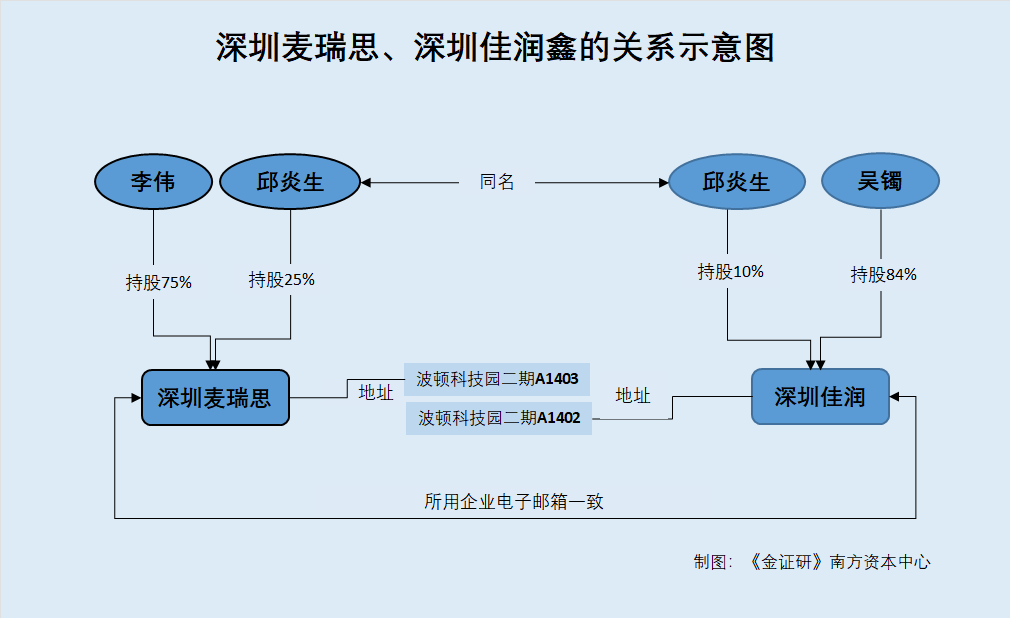 2.5 南京同芯合伙人包括高华,而高华、李伟峰均与自然人王晓丽或存“交集” 上述提及,2016年12月,外部投资人李伟峰、高华等通过员工持股平台南京同芯入股。 据签署于2025年10月15日的招股书,截至签署日,高华亦是外部投资人,持有员工持股平台南京同芯12.747万元出资额,出资比例为2.345%。 据市场监督管理局数据,2017年3月3日,深圳市和盈电子有限公司(以下简称“和盈电子”)由周铁、吴辉、张小娟共同出资设立,同年5月19日股东变更为吴辉、张小娟,8月28日变更为张小娟、高华、王晓丽,三人分别持股60%、20%、20%。 2019年4月22日,张小娟持有的和盈电子60%股权转让给戴艳花。2021年5月27日,高华将持有的和盈电子5%股权转让给戴艳花,对和盈电子持股比例降至15%。2025年7月24日,戴艳花、王晓丽分别将持有的和盈电子65%、20%股权转让给刘孝福,退出和盈电子。 即2017年8月,王晓丽、高华一同变更成为和盈电子少数股东,后王晓丽于2025年7月退股。 截至查询日2025年11月12日,和盈电子由刘孝福、高华分别持股85%、15%。 此外,据市场监督管理局数据,2021年10月11日,深圳市诺富科技有限公司(以下简称“诺富科技”)由深圳市富悦电子有限公司(以下简称“富悦电子”)单独出资设立。数日后即同年10月18日,诺富科技变更为由富悦电子、和盈电子分别持股80%、20%。2023年6月5日,诺富科技完成注销。 截至查询日2025年11月12日,富悦电子系由张国良、胡巧宏分别持股90%、10%。 2022年4月6日,深圳市诺富电子投资企业(有限合伙)(以下简称“诺富投资”)注册设立,截至查询日2025年11月12日,由刘孝福、罗叶、胡巧宏、曹家绮、王晓丽各自持股20%。 基于上述多家企业的持股关系,高华与名为王晓丽的自然人或存交集。 而与名为王晓丽的自然人或存交集的,还有深圳麦瑞思的李伟峰。 据市场监督管理局数据,2023年,深圳市佳润远景企业管理合伙企业(有限合伙)(以下简称“佳润远景”)、深圳市佳润远达企业管理中心(有限合伙)(以下简称“佳润远达”)、深圳市瀚誉科技有限公司(以下简称“深圳瀚誉”)的企业联系电话均为13*******19,企业电子邮箱为23*****16@qq.com。2024年,佳润远达、深圳瀚誉亦使用前述联系方式。而佳润远景2024年的企业电子邮箱为liuyanqing@caron-tech.com。 需要指出的是,caron-tech.com系深圳佳润鑫官网的域名。 此外,截至查询日2025年11月12日,佳润远景的企业通信地址为深圳南山区波顿科技园二期A1405,佳润远达通信地址则为波顿科技园二期A1404。 据市场监督管理局数据,佳润远景于2023年7月20日注册成立,截至查询日2025年11月12日由王晓丽、邱炎生、何珍玉分别持股72.5%、17.5%、10%。 此外,佳润远达成立于2021年5月25日,截至查询日2025年11月12日执行事务合伙人为深圳瀚誉,合伙人包括吴奥城、邱炎生、游冰、王帅、瀚誉科技。深圳瀚誉成立于2021年5月20日,截至查询日2025年11月12日由王晓丽、吴镯分别持股81%、19%。 不难看出,深圳麦瑞思由李伟峰、邱炎生分别持股75%、25%,其与吴镯控股的深圳佳润鑫共用联系方式且地址毗邻。2023年,佳润远景、佳润远达、深圳瀚誉共用企业联系电话及电子邮箱,其中所用电子邮箱与深圳麦瑞思、深圳佳润鑫2023年所用电子邮箱一致。且佳润远景、佳润远达、深圳麦瑞思、深圳佳润鑫企业通信地址均位于深圳南山区的波顿科技园二期A1栋4楼。可见,深圳麦瑞思的股东李伟峰,与名为王晓丽的自然人或也存交集。