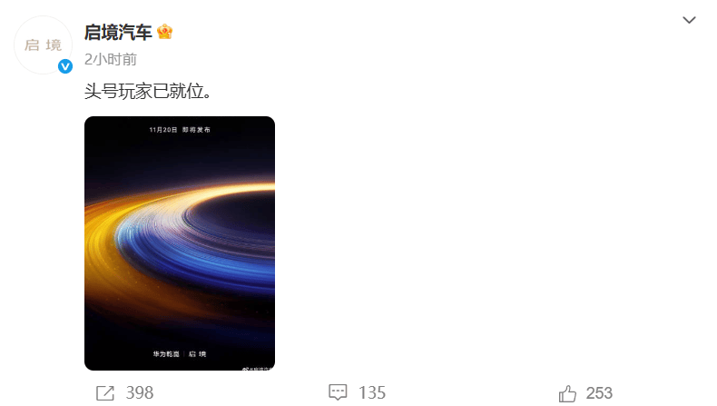 11月14日,启境汽车通过其官方社交平台发布了一张预热海报,正式宣告品牌即将亮相。海报以“头号玩家已就位”为标语,搭配“开启新境”、“11月20日即将发布”及“华为乾”等关键词,迅速在行业内引发关注。 据了解,启境汽车是由广汽集团与华为共同打造的全新高端智能新能源汽车品牌,隶属与华为合作的“HI PLUS”模式。该品牌定位瞄准30万元级别的高端市场,致力于为消费者提供兼具年轻化、科技感与高品质的智能电动出行体验。 此外,华为负责智能驾驶、座舱、车云全栈技术解决方案和产品定义,派遣数百人团队驻场,全程参与从设计到营销的每个环节。 广汽负责整车研发、制造、供应链和渠道服务,依托28年造车经验和世界级精益制造体系。 此次官宣,标志着广汽与华为在智能汽车领域的合作进入实质性推进阶段,启境汽车也将成为高端新能源市场又一重要参与者,其11月20日的正式发布备受期待。