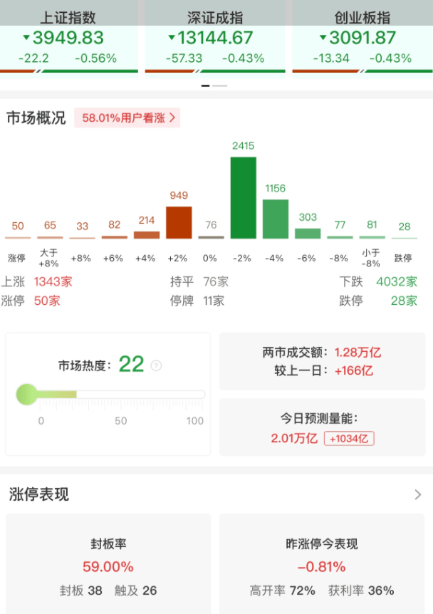 格隆汇11月18日|A股三大指数早盘集体下跌,截至午间收盘,沪指跌0.56%报3949.83点,深成指跌0.43%,创业板指跌0.43%,北证50指数跌2.14%。沪深京三市半日成交额12962亿元,较上日放量179亿元,全市场超1300只个股上涨。盘面上,电池、煤炭、化工板块跌幅居前,AI语料、文化传媒板块走强。