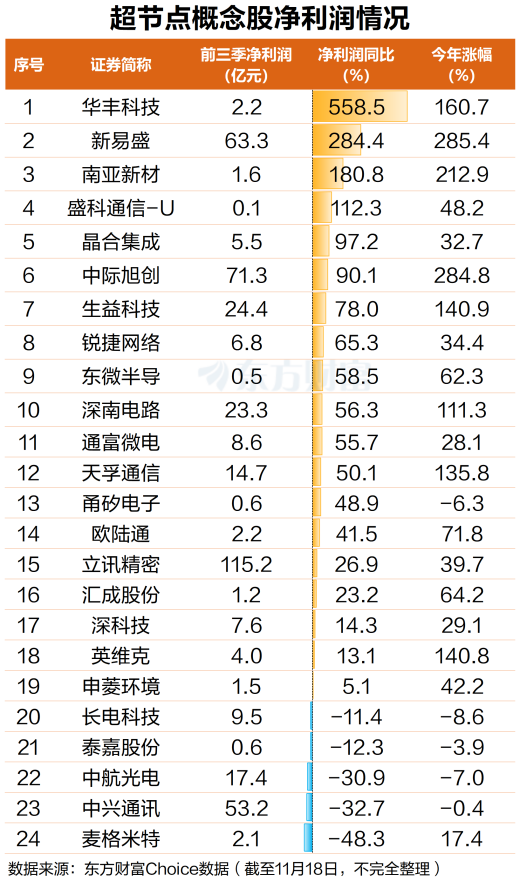 11月19日早盘,半导体产业链多股异动,光刻机(胶)、第四代半等导体方向表现位居两市前列。截至发稿,国风新材涨停,赛微电子涨近10%,腾景科技涨近8%,彤程新材、东方嘉盛涨超4%,南大光电、新莱应材等多股涨超2%。 消息方面,操作系统大会2025日前在北京中关村成功召开。大会由开放原子开源欧拉(OpenAtom openEuler,简称“开源欧拉”或“openEuler”)社区,协同数十家产业伙伴共同举办。会上,开放原子开源欧拉委员会主席熊伟发布openEuler全球首个面向超节点的操作系统openEuler24.03LTSSP3。 ![]() 图片来源:操作系统大会2025官网 据熊伟其介绍,openEuler全球首个超节点的操作系统(openEuler24.03LTSSP3)对openEuler异构融合系统升级,可加速释放超节点异构算力。此外,他在主题演讲中提到,openEuler开启新的5年发展之路,坚定拥抱超节点,坚定拥抱AI,加速全球化进程。 公开资料显示,超节点是一个重要的技术概念,主要用于提升计算能力和效率。它可以理解为将多种计算资源(如CPU、GPU、NPU等)整合为一个大节点,以实现更高效的并行计算和数据处理。目前,超大规模的超节点是大模型训练最理想的工具。 “智能时代的操作系统将衔接智能时代的硬件和应用,成为释放算力潜能的核心基石,助力千行万业智能化。”在操作系统大会2025,中国工程院院士倪光南指出,“超节点已经成为算力基础设施建设和部署的主流形态。” 当前,全球大厂均已先后布局超节点产品,英伟达已展出其72卡、144卡、576卡的超节点路径,华为也亮相384卡、8192卡、15488卡的超节点方案。超节点将成为算力的主流形态,意味着在未来,算力需求方的采购,将以超节点为单位,而不是GPU卡。 业内人士指出,超节点某种程度上就是大模型的“光刻机”。从重要性看,大模型的训练和推理离不开高算力、高性能的超节点基础设施,正如先进制程离不开高性能光刻机。从价值量看,一台1980iDUV/低数值孔径EUV光刻机售价约1亿美元,而上万卡规模的超节点售价预计也将超过1亿美元。 业内人士认为,超节点将是中国算力突围的一次革命性机会,在国产算力拥有万卡规模等级的超节点后(如26H2,华为Atlas950),国产大模型将真正拥有了训练利器,有望极大提升国产大模型训练效率。中国互联网C5高增长与超节点采购占比提升,超节点市场规模有望迅速增长。 东北证券指出,2023 年开始,AI 训练与推理需求逐步放量,驱动国内云厂商进入新一轮资本开支上行周期。BAT(百度、阿里、腾讯) 等头部企业的算力基础设施投资显著提速,资本开支强度连续两年提升。 预计中国互联网C5(阿里巴巴、字节跳动、腾讯、美团及百度)AI基础设施资本开支将从1688亿元增长至1.92万亿元。超节点作为高密度算力部署的核心基础设施,其在C5资本开支中的占比将随时间快速提升,假设该占比从2025年的10%上升至2030年的约80%,对应的超节点需求空间将从2025年的253亿元增至2030年的1.54万亿元。 ![]() 以华为Atlas950作为测算标准,假设年出货1000套,各环节占比分别为:先进制程晶圆代工约388亿元、封装约624亿元、HBM约793亿元,Scale-up交换芯片约549亿元,高速铜缆模组约656亿元,光模块约492亿元,电源约246亿元,液冷约697亿元,PCB约246亿元,DrMOS约41亿元,散热盖约42亿元。 ![]() 从超节点产业链公司的业绩情况看,今年整体表现亮眼,业绩大增的个股不在少数。据东方财富Choice数据,超节点概念股今年前三季度净利润多数同比增长(不完全整理),其中华丰科技、新易盛、南亚新材、盛科通信-U等增速居前,均超100%;晶合集成、中际旭创、生益科技、锐捷网络等8股,增速均超50%。 ![]()