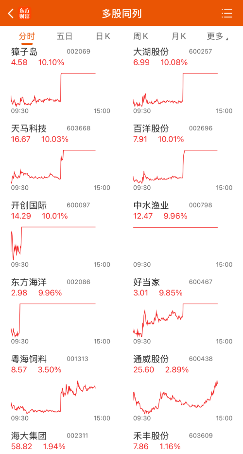 A股三大股指午后回升翻红,截至发稿,沪指涨0.41%,深成指涨0.24%,创业板指涨0.56%。涨指数不涨个股现象再现,全市场仍有4000股飘绿。 板块方面,水产养殖板块午后开盘突现异动,獐子岛、大湖股份、百洋股份、天马科技均直线拉升封涨停,中水渔业收获四连板,粤海饲料、海大集团、*ST佳沃等多股跟涨。 ![]() 消息面上,据新华社报道,日本媒体和专家担忧日中关系恶化,进一步冲击本已面临下行压力的日本经济。作为我国农产品贸易的重要伙伴,日本与我国在水产品、高端果蔬等领域长期保持密切贸易往来,相关领域的贸易变化将引发广泛关注。 外交部发言人毛宁11月18日表示,日方必须立即收回错误言论,深刻反省,改弦更张,给中国人民一个明确的交代。 另据澎湃新闻报道,11月18日,外交部亚洲司司长刘劲松在北京同日本外务省亚大局局长金井正彰举行磋商。磋商结束后,刘劲松回应相关问题时表示对磋商结果不满意,并称双方会面时气氛严肃。 长江证券指出,2025年我国水产行业迎来显著复苏,主要水产品价格普遍回升至历史高位。数据显示,草鱼价格高点达14元/公斤,较年初上涨25%;特色水产中,加州鲈和黄颡鱼价格分别上涨至22.1元/斤、15.8元/斤,均突破2021年以来同期最高水平。研报分析认为,这种价格回升并非偶然,而是行业经历2023-2024年两年存塘消化后的必然结果。 ![]() 有机硅板块午后亦显著走强,晨光新材封涨停,远翔新材、合盛硅业触及涨停,东岳硅材涨超13%,硅宝科技、新亚强、润禾材料等多股均明显拉升。 消息面上,据媒体此前报道,有机硅行业实控人会议将于11月18日召开,或将确定减产目标。 国投证券研报指出,若行业减产30%的计划得到落实,或将每月影响近9万吨供应量,有望充分激发价格弹性。在需求端,伴随新能源、电子电器、半导体等领域需求同步崛起,有机硅应用领域有望加速向价值链高端延伸,打开新增长点。 开源证券也认为,若联合减产落地,有机硅供需有望得到边际改善,产业链有望迎来景气上行周期。