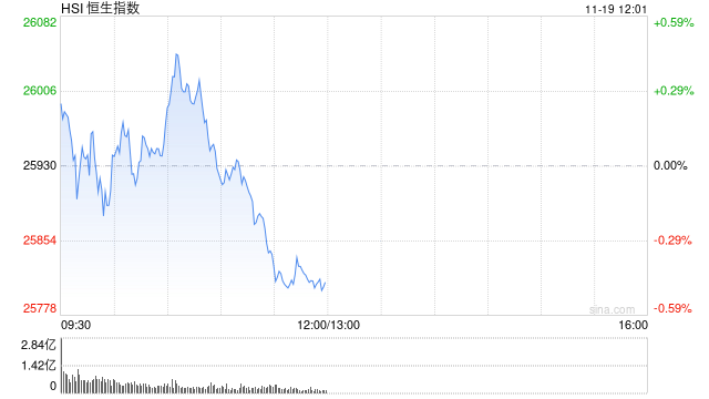 11月19日消息,港股三大指数震荡走低。截至午间收盘,恒生指数跌0.45%,报25812.77点,恒生科技指数跌0.98%,国企指数跌0.35%。盘面上,科网股跌多涨少,小米跌超4%,快手跌超2%;石油股涨幅居前,中石化涨超3%;黄金股普涨,山东黄金(600547)涨超3%;新能源车企股走弱,小米汽车跌超4%。