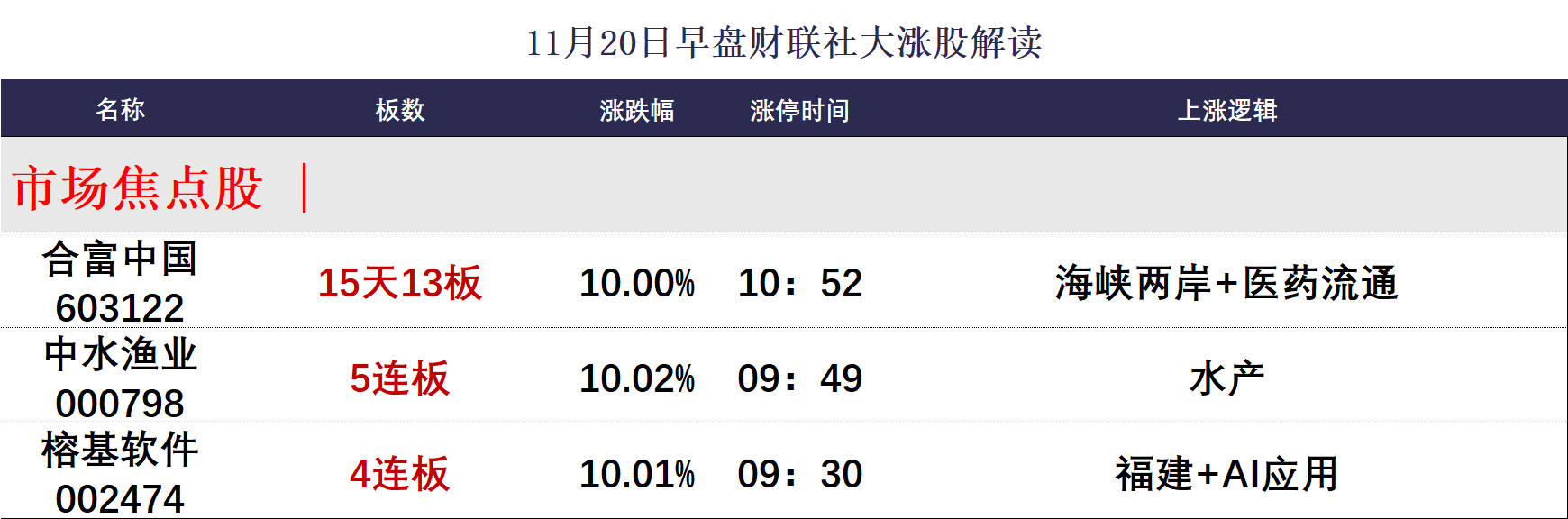 今日午盘全市场共39股涨停,连板股总数8只,32股封板未遂,封板率为55%(不含ST股、退市股)。焦点股方面,合富中国复牌后再度涨停走出15天13板,水产股中水渔业晋级5连板,叠加了福建属性的AI应用概念股榕基软件4连板。