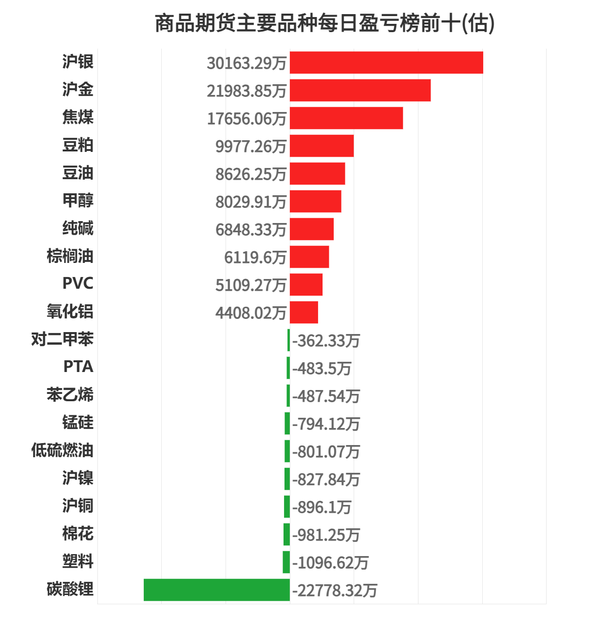 每日期货龙虎榜,带你深度了解市场。 市场一览:周四商品期货综合指数下跌0.43%,日内资金净流出43.16亿元。 市场成交量为3565.50万手,成交额为2.66万亿元。 持仓量为4171.06万手,较前一交易日减少2.95万手。 市场成交量前十和持仓量前十如下图所示: ![]() ![]() ![]() 品种盈亏榜:今日商品期货上榜机构席位中沪银盈利第一,为30163.29万元。 碳酸锂亏损第一,为22778.32万元。 ![]() 注:盈亏数据为对应龙虎榜持仓的估算数据。 您可通过点击丁冬财经期货APP资讯页面“龙虎榜”及丁冬财经期货PC端左侧“龙虎榜”查看各类席位持仓及盈亏榜单信息。点此查看>> ![]() ![]() 本信息来源于丁冬财经Choice数据,相关数据仅供参考,若数据有误,以交易所发布数据为准,不构成投资建议。 (文章来源:丁冬财经研究中心) |