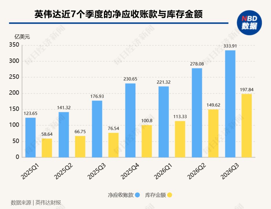 11月19日美股盘后,芯片巨头英伟达再次以一份“炸裂”的财报震撼华尔街。 2026财年第三季度(截至2025年10月26日),英伟达营收同比大涨62.5%,净利润同比增长65%。数据中心业务单季收入首次突破500亿美元大关。英伟达股价在当天盘后大涨5%。 Wedbush证券分析师Dan Ives告诉《每日经济新闻》记者(以下简称“每经记者”),这是一个值得“开香槟的时刻”。他认为,这份财报将为看涨人工智能革命的论点提供“主要积极催化剂”。 然而,在这份光鲜的成绩单之下,一些潜在的风险信号也开始浮现。 每经记者梳理近7个季度的财报发现,英伟达的应收账款一直持续上升,且客户集中度过高。另外,根据数据平台Discounting Cash Flows,英伟达的库存周转天数(Days Inventory Outstanding, DIO)在过去几个季度持续攀升,目前为117.5天,高于五年平均水平。 作为目前唯一公开给予英伟达“卖出”评级的分析师,Seaport Global Securities分析师Jay Goldberg对每经记者表示,该股“下行风险远大于上行空间”。 营收利润同比均涨超60%,黄仁勋:已经进入AI良性循环 2026财年第三季度,英伟达营收高达570.1亿美元,同比增长62.5%,显著高于市场预期的551亿至554.5亿美元;净利润约为319亿美元,同比大涨65%。 业绩的强劲增长,主要得益于数据中心业务的爆发。当季,英伟达数据中心营收创新高,达512亿美元,同比增长66%,环比增长25%。 除了数据中心业务,英伟达的游戏业务也表现不俗,当季收入为42.6亿美元,同比增长30%,受益于市场对RTX50系列产品的强劲需求。 英伟达创始人兼CEO黄仁勋在财报中表示:“Blackwell芯片销量远超预期,云端GPU已售罄。训练和推理计算需求持续增长,呈指数级上升。我们已经进入人工智能的良性循环。” 在财报会议上,黄仁勋还直接驳斥了AI“泡沫论”。他表示最近有很多关于AI泡沫的讨论,而英伟达看到了一些很不一样的东西。英伟达的产品和其他加速器不同,适合在人工智能的每一阶段包括预训练、后训练中使用。 这份财报对于看好AI前景的投资者而言,无异于一针强心剂。Wedbush证券分析师Dan Ives向每经记者表示:“随着市场对AI泡沫的担忧加剧并给科技股带来压力,今晚的市场和科技股都迎来了开香槟的时刻。”他认为,英伟达稳健的盈利和指引是“对AI革命的又一次验证”,并断言“AI泡沫的担忧被严重夸大了”。 对于下一财季,英伟达给出的营收指引为650亿美元,也远超分析师普遍预期的617亿美元,甚至超过了部分乐观投资者的预期上限。 Dan Ives用“令人瞠目结舌”来形容这次指引上调。在他看来,这份报告将对微软、谷歌、亚马逊、甲骨文等超大规模云服务商以及Palantir等软件公司构成利好,并带动整个半导体板块上行。 应收账款连续7个季度上涨,分析师:英伟达下行风险大于上行空间 不过,每经记者梳理近7个季度的财报发现,英伟达的应收账款一直持续上升,且客户集中度过高。 ![]() 数据显示,英伟达在第三财季的应收账款已高达333.91亿美元,其中来自四大直接客户的应收账款合计占比高达65%。而在2025年第四财季,前两大直接客户在应收账款中的占比为33%。 这种对少数客户的深度依赖,意味着一旦这些主要客户的资本支出(Capex)计划发生变动,英伟达的未来订单和收入稳定性将受到直接冲击。 更深层次的担忧则是英伟达产品在市场上的真正需求。近期,英伟达通过投资入股客户公司,再由后者购买其芯片的“循环交易”模式引发了广泛讨论。 例如,英伟达宣布投资100亿美元于Anthropic,后者则将购买300亿美元由英伟达芯片支持的AI算力服务。高盛曾估计,英伟达明年将有15%的销售额可能来自此类交易。 Seaport Global Securities分析师Jay Goldberg在接受每经记者采访时指出:“我越来越担心终端需求,因为他们的许多客户正通过日益复杂的融资方式借入越来越多的资金。” Goldberg认为,市场有理由担忧英伟达是否在通过间接补贴或复杂的债务结构来人为“创造需求”,而不是响应真实的市场需求。 他对每经记者透露了一个关键细节:“许多‘新云’(neoclouds)声称他们的算力已经售罄,但我知道一些规模较小的云服务商并未实现100%的利用率。如果利用率真的是100%,为什么他们在与英伟达的销售协议中还需要‘兜底条款’(backstops)呢?”所谓的“兜底条款”,即英伟达在向新的云客户销售产品时,承诺购买其一定量的算力容量。 作为目前唯一公开给予英伟达“卖出”评级的分析师,Jay Goldberg说:“我认为,英伟达股票的下行风险大于上行空间。” 库存周转天数高于5年平均水平 另一个值得警惕的信号是库存数据。 财报显示,截至第三财季末,英伟达的库存总额升至197.84亿美元。根据数据平台Discounting Cash Flows,英伟达的库存周转天数(DIO)目前已达117.5天,而在2026财年第一季度时,这一数字还在58.64天。 这一水平不仅比公司过去五年的平均值高出13天,而且对于一个宣称其高端产品“供不应求”的公司而言,库存的持续攀升显得极不寻常。在半导体行业,库存天数稳步增加通常被视为需求可能放缓或供需关系正在发生变化的先行指标。 ![]() 外部的供应链瓶颈也可能成为制约英伟达的增长。 Jay Goldberg向每经记者分析称,尽管CoWoS先进封装和高带宽内存(HBM)等供应链限制正在有所缓解,但仍然是交付的制约因素。 更重要的是,Goldberg表示,“在美国和欧洲,电力是一个主要问题,很可能导致未来的数据中心建