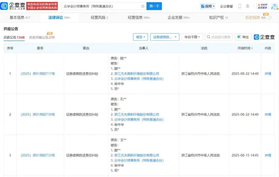 本文授权来自《中国民商》 作者:尹 燃 编辑:蒋希音 正在北交所冲刺IPO的湖南顶立科技股份有限公司(下称“顶立科技”)有点烦,先后遭到了队友的“伏击”! 继保荐机构西部证券(002673)的两名保代在今年6月受到北交所自律处罚,且被列入C类名单(处罚处分类)后,审计机构众华所也来添堵,目前正陷入诉讼旋涡、坐上被告席,案由是证券虚假陈述责任纠纷。 审计机构未尽责接连被告 顶立科技2023年12月20日在新三板挂牌并同时进入创新层,为登陆北交所做准备。而在这一年之前,顶立科技曾与中金公司签署辅导协议并进行备案,当时的第一志愿应该是登陆科创板。后因战略发展调整,顶立科技改聘西部证券,变道为北交所IPO。 顶立科技系从深主板上市公司楚江新材(002171)分拆而来,楚江新材持有顶立科技66.72%的股份。 控股股东楚江新材专注于材料的研发与制造,其业务涵盖特种热工装备及新材料、高性能碳纤维复合材料和先进铜基材料三大板块。其中,顶立科技负责特种热工装备及新材料板块,主营碳陶热工装备、先进热处理热工装备及粉冶环保热工装备等特种热工装备和金属基3D打印材料及制品等新材料的研制、生产与销售。 值得注意的是,负责此次IPO审计工作的众华所在今年1月就被监管部门“点名”。根据证监会官网公示的行政处罚决定书(〔2025〕2号),众华所因为上市公司天沃科技(002564)提供审计服务未勤勉尽责而被立案调查,其出具的2017年至2021年年度审计报告存在虚假记载。证监会要求众华所责令改正,并没收审计业务收入787.74万元、处以罚款1,181.60万元。 处罚并未让事件平息,众华所还吃上了官司。根据企查查,今年5月,苏州市中级人民法院开庭受理五名原告对众华所、天沃科技等被告提起的诉讼,案由是证券虚假陈述责任纠纷。 在时隔3个月后,众华所又坐上被告席。今年8月份,杭州市中级人民法院开庭受理多名原告对上市公司尤夫股份、众华所等被告的起诉,案由依然是证券虚假陈述责任纠纷。 从企查查上查询,众华所因证券虚假陈述责任纠纷被起诉的开庭公告多达上千条。